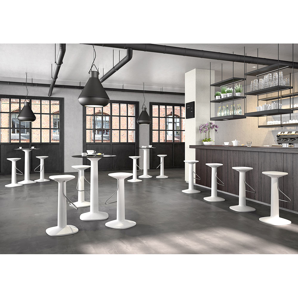 polyethyleen met een matte afwerking, wat veelzijdigheid en weerstand biedt tegen hitte, zon en schokken, waardoor het het perfecte product is om ook buiten te gebruiken. De kruk heeft ook een praktische en comfortabele voetensteun in roestvrij staal om het product nog functioneler te maken. Ideaal om de inrichting van omgevingen te voltooien met een eigentijds en minimaal ontwerp, waardoor de kamer karakter en persoonlijkheid krijgt.