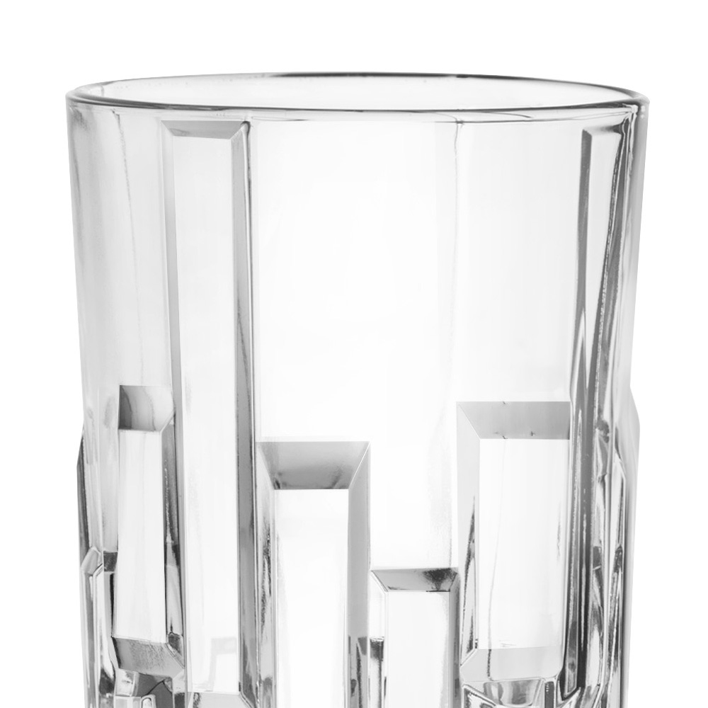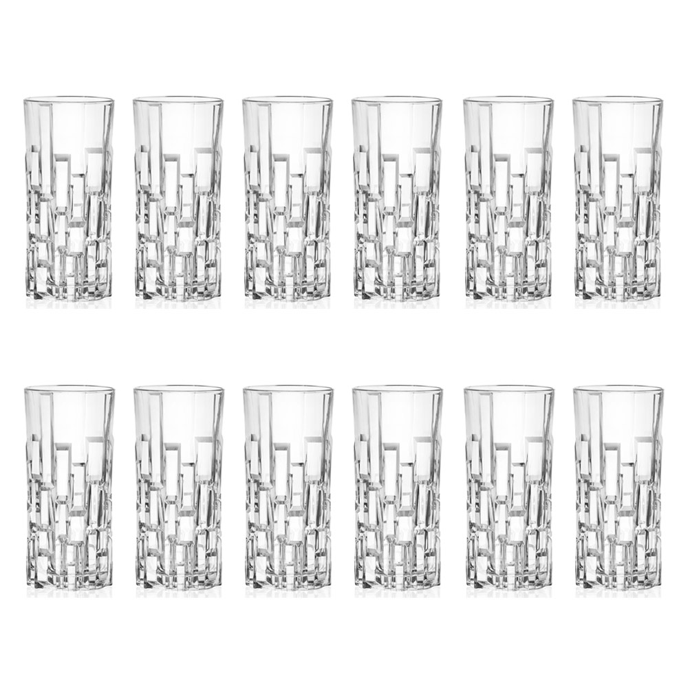 Hoge tuimelaarglazen van eco-kristal met snijwerkdecoratie, 12 stuks gemaakt in Italië.