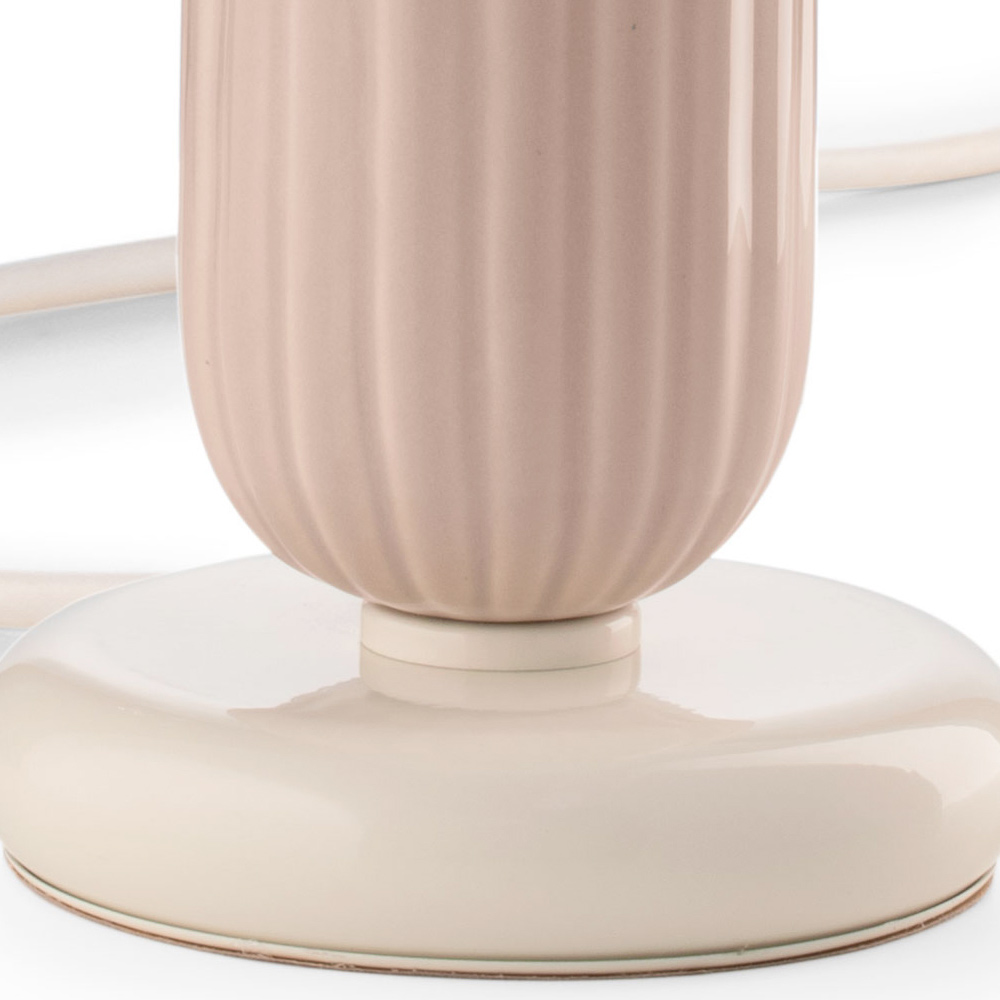 De keramische lampenkap is ontworpen om een zacht en omhullend licht te verspreiden, waardoor hij perfect is om een gastvrije sfeer toe te voegen aan een leeshoek of als lichtpunt op een console bij de inkom. De combinatie van kleuren en materialen maakt deze lamp tot een uniek stuk, dat zich kan aanpassen aan zowel moderne als traditionele omgevingen.