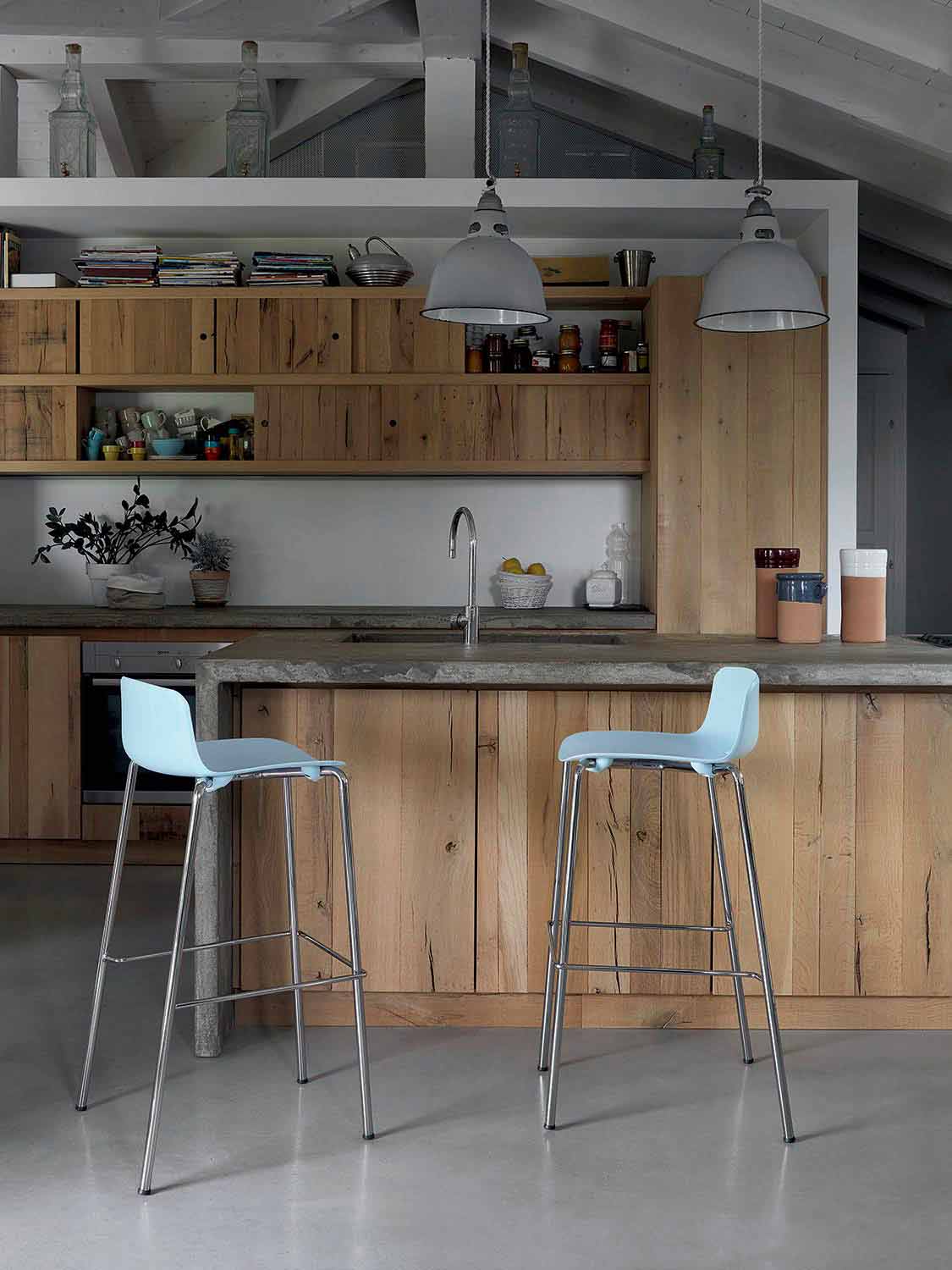 De Christabel barkruk heeft een minimalistische stijl waardoor hij perfect is voor elke omgeving dankzij de veelzijdigheid van de verchroomde metalen structuur en de polypropyleen zitting verkrijgbaar in 7 kleurvarianten.