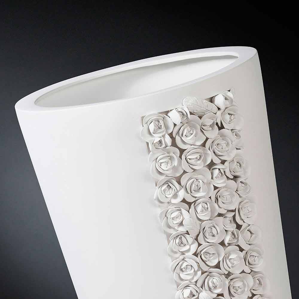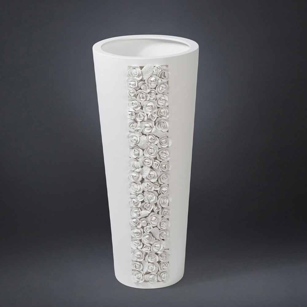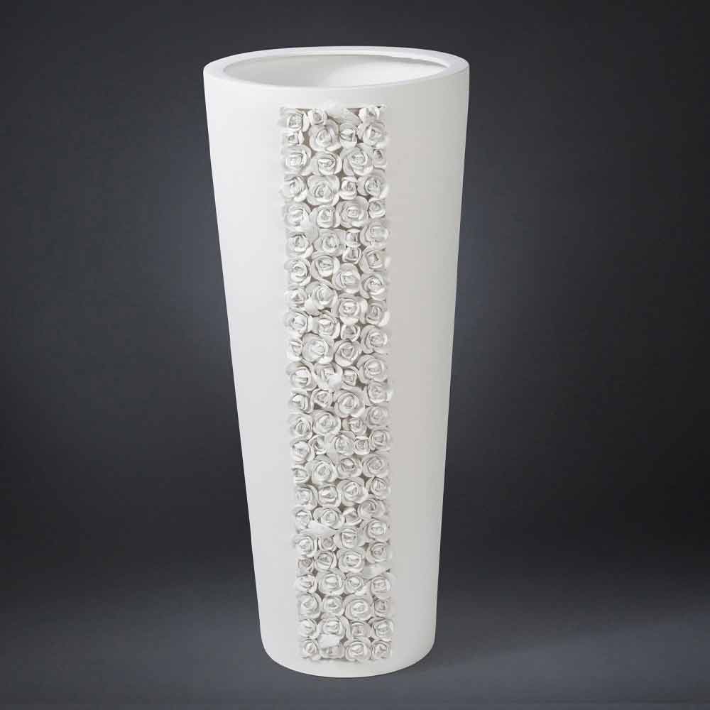 Hoge siervaas in wit keramiek, handgemaakt in Italië.