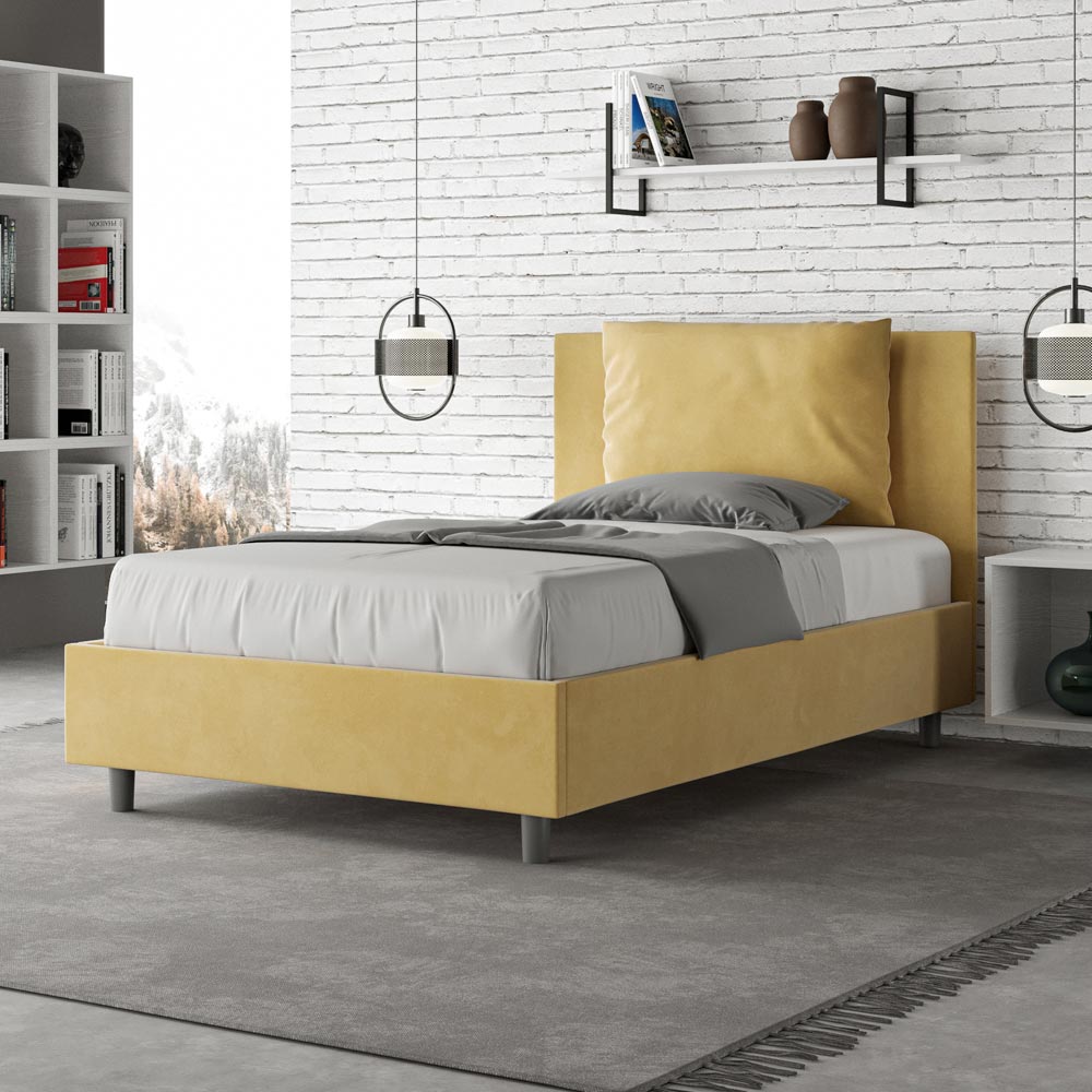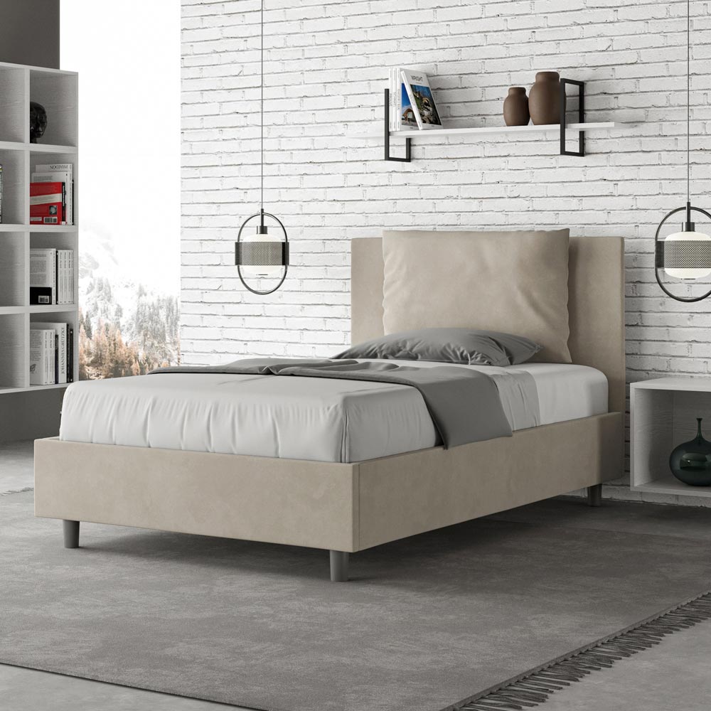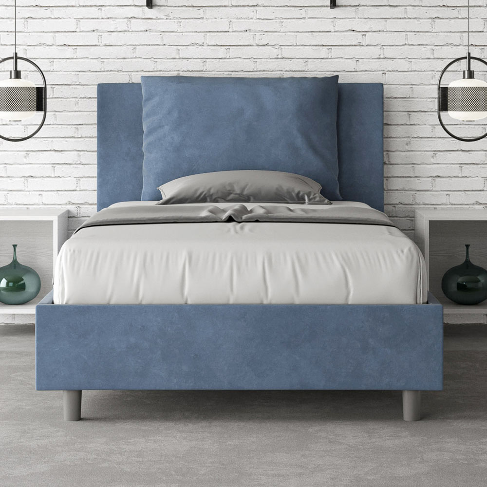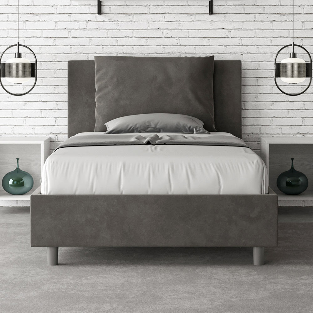 Queensize bed 120x200 cm, gewatteerd en bekleed met microvezel, gemaakt in Italië.