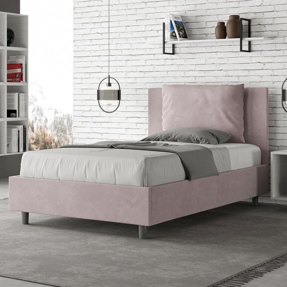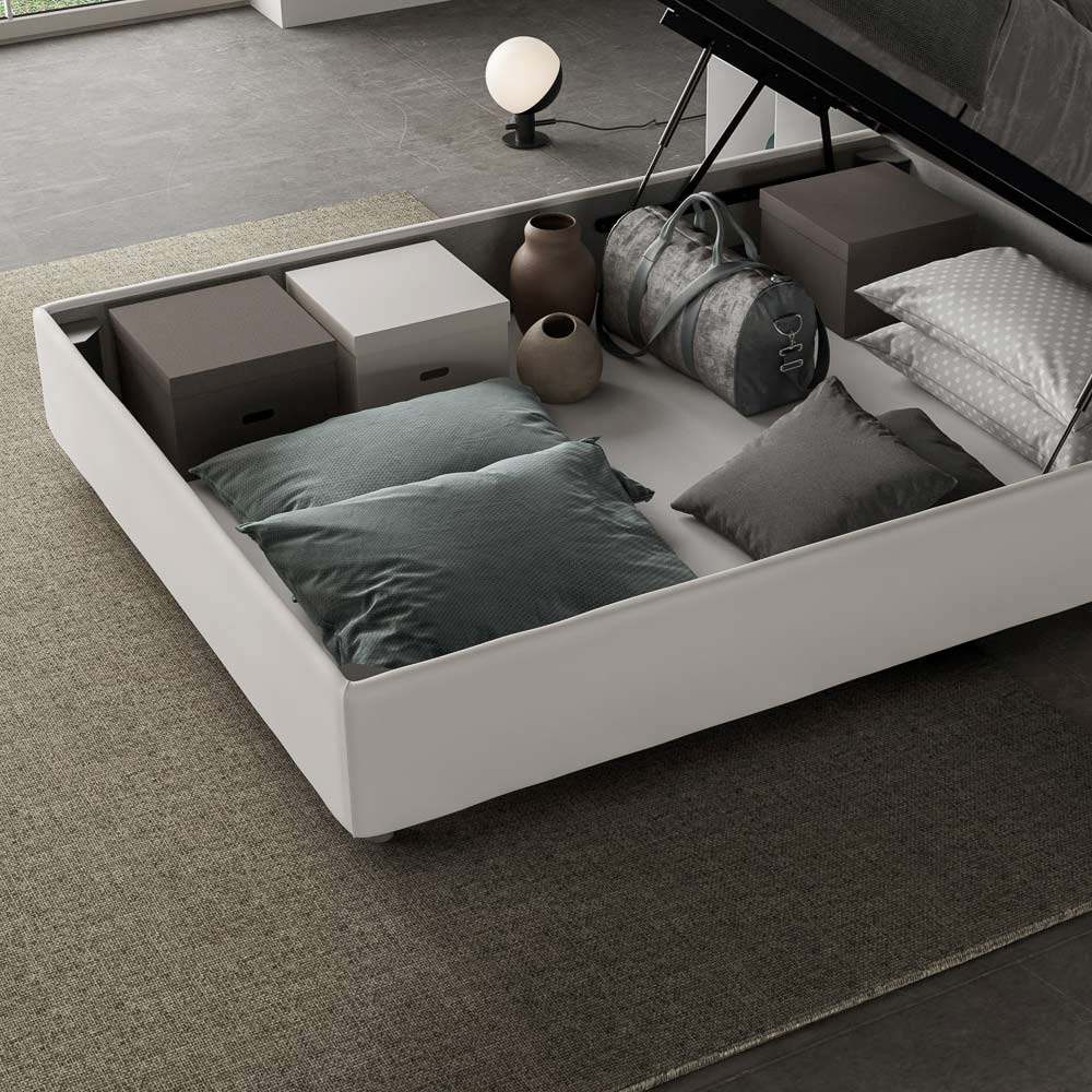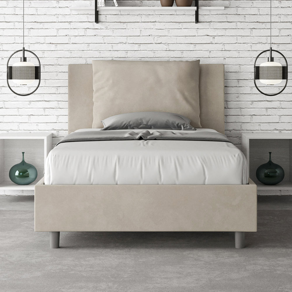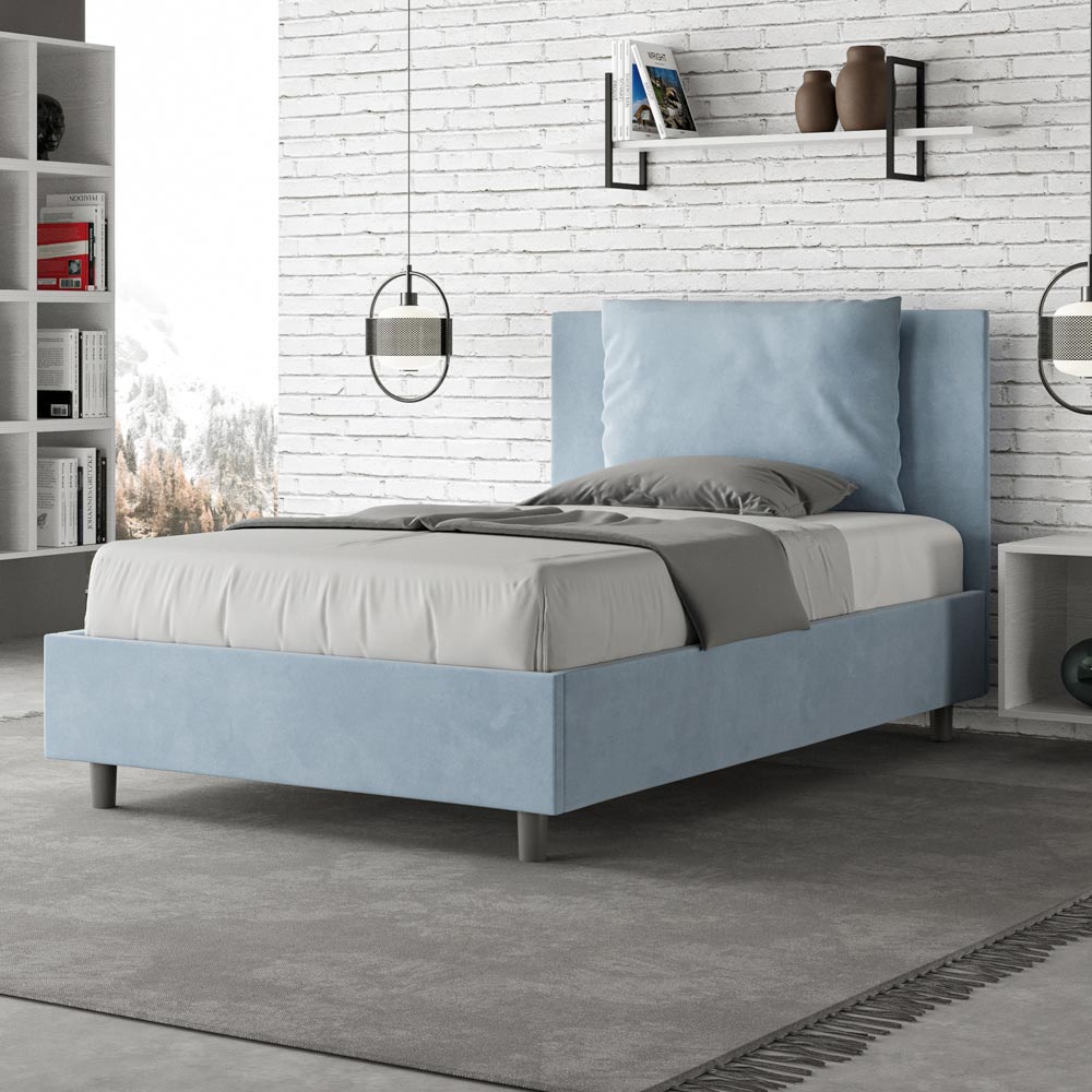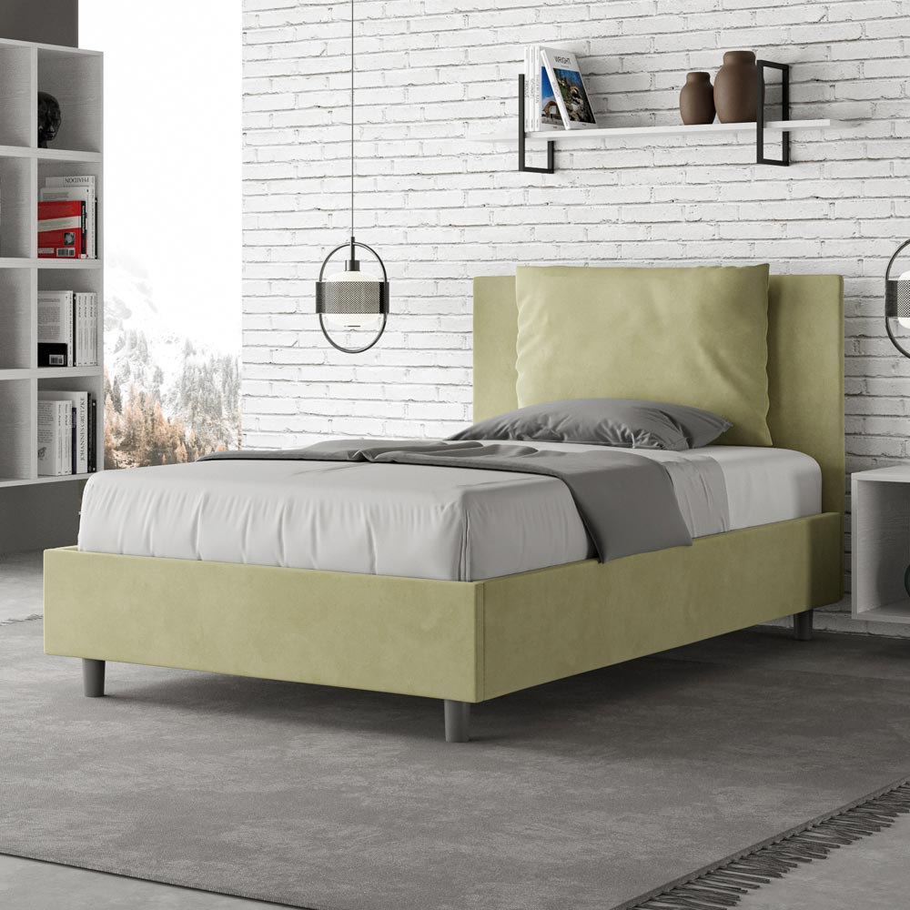 Queensize bed 120x200 cm, gewatteerd en bekleed met microvezel, gemaakt in Italië.