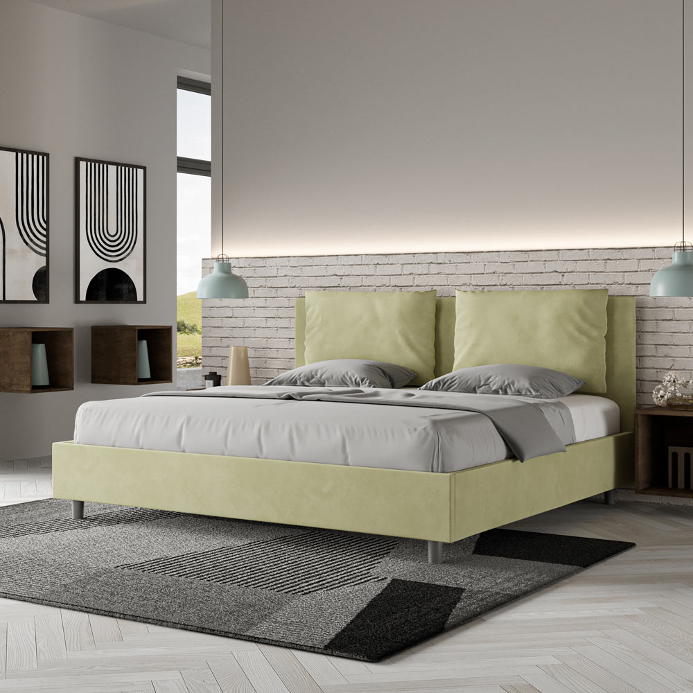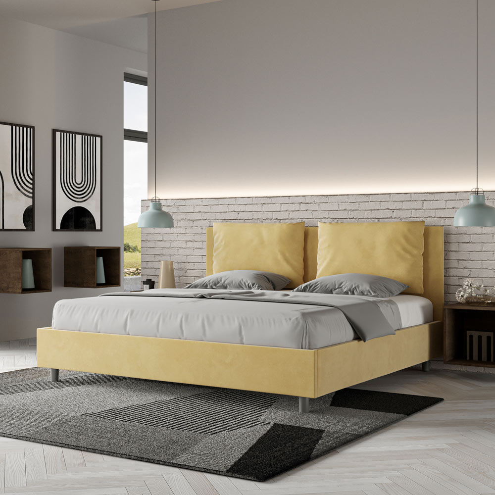 Kingsize bed 180x200 cm, gewatteerd en bekleed met microvezel, gemaakt in Italië.