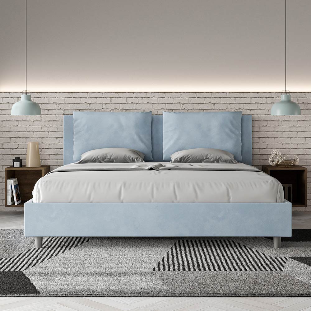Kingsize bed van 180x200 cm, gewatteerd met melamine panelen en bekleed met microvezel , volledig gemaakt in Italië. Dit kingsize bed met gestoffeerd frame belichaamt perfect de voordelen van een gestoffeerd bed: comfort, een eigentijdse stijl, functionaliteit en efficiënt ruimtegebruik . Dit bed, met zijn brede, gewatteerde hoofdeinde , biedt een ontspannende hoek, ideaal om te lezen of tv te kijken, en verfraait zo uw slaapkamer. Elegant en stijlvol, dit bed is gestoffeerd met microvezel, waardoor schoonmaken snel en gemakkelijk is: even afvegen met een microvezeldoekje is voldoende om het te laten glanzen.
