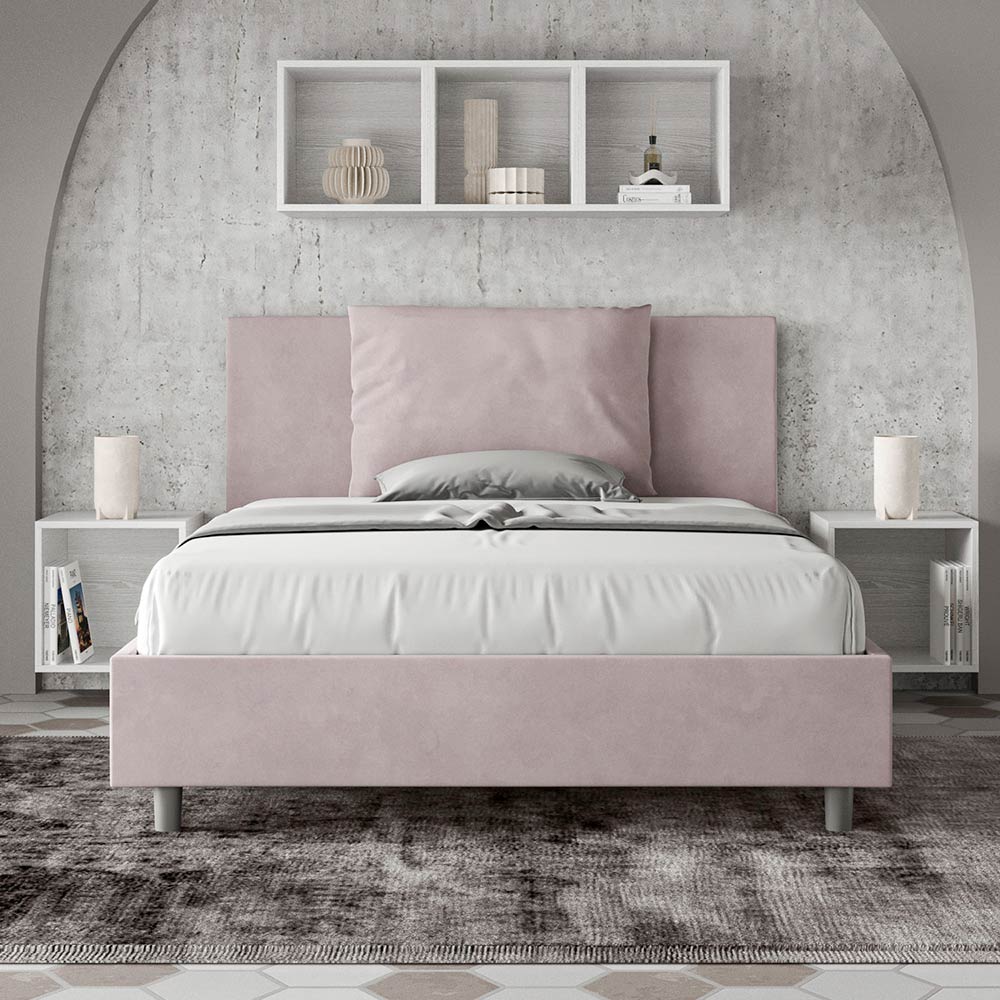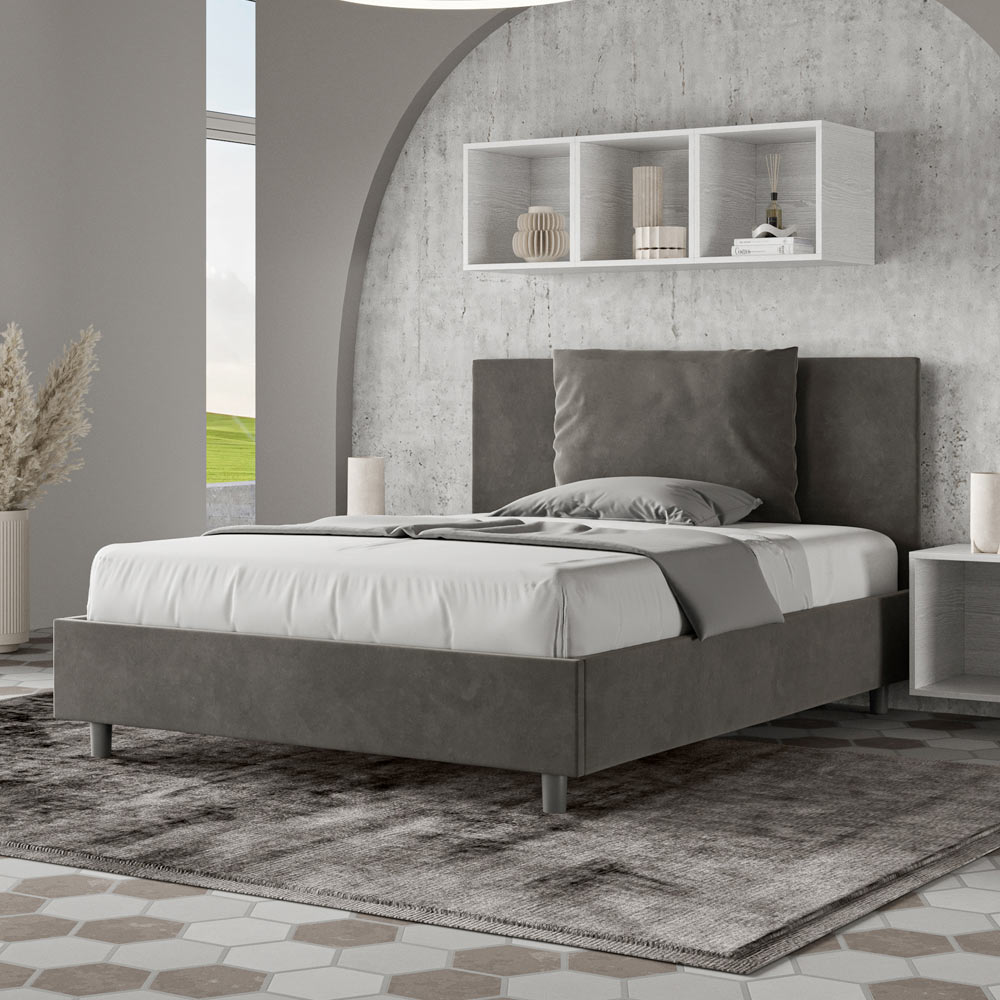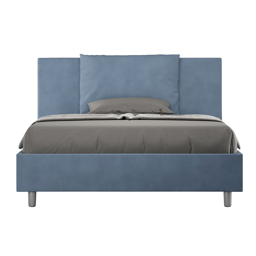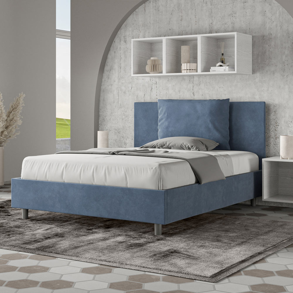 Frans bed 140x200 cm, gewatteerd en bekleed met microvezel, gemaakt in Italië.