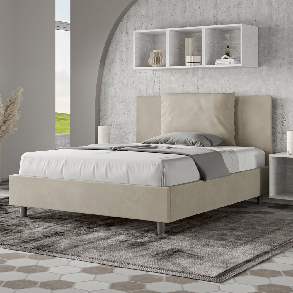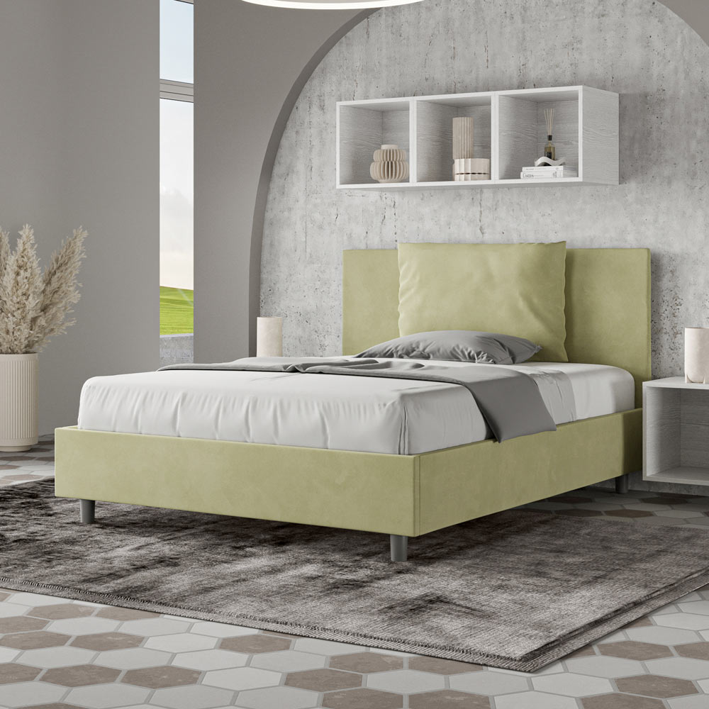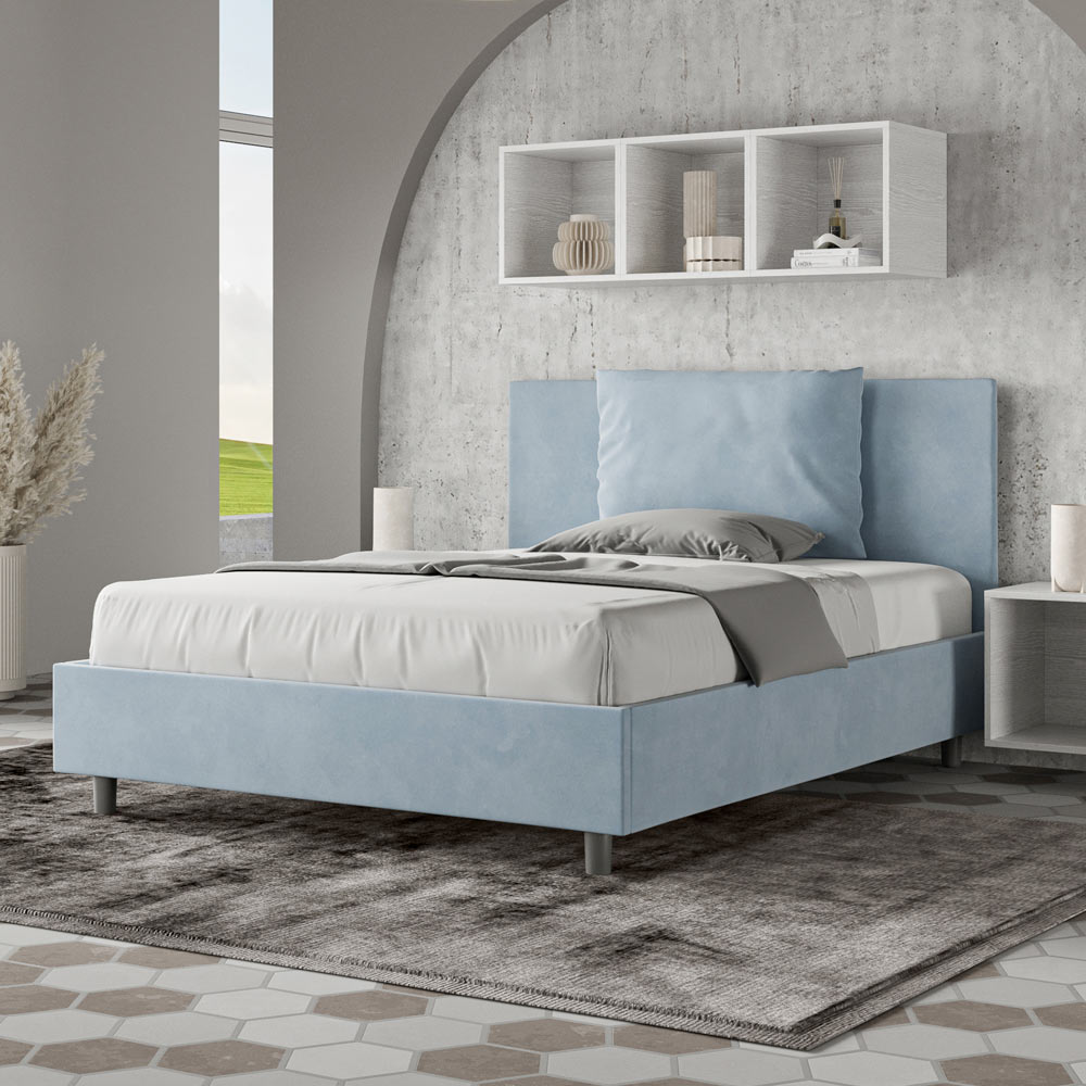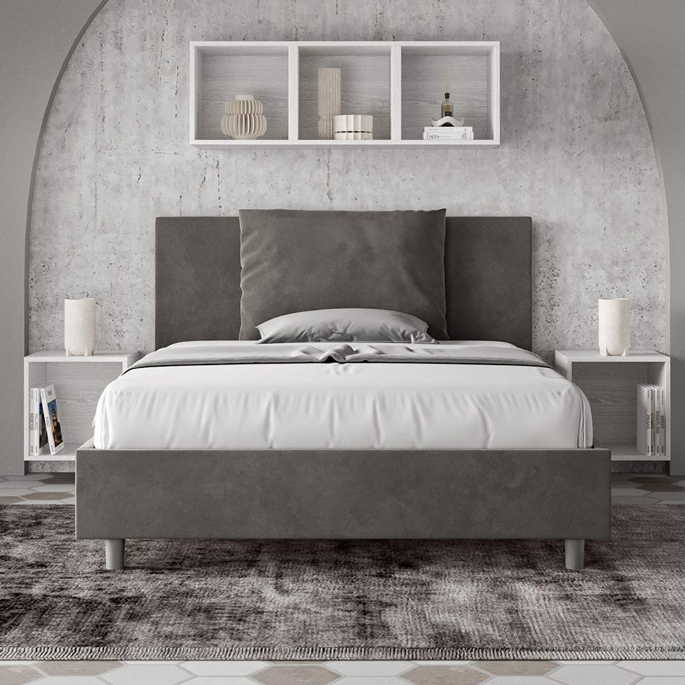 Frans bed 140x200 cm, gewatteerd en bekleed met microvezel, gemaakt in Italië.