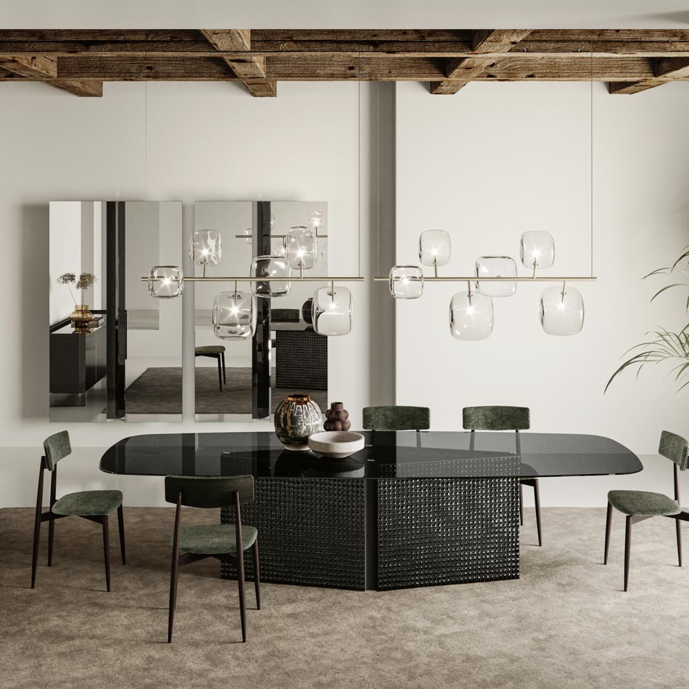 Deze eigentijdse kroonluchter valt op door zijn unieke ontwerp en het vermogen om het middelpunt van elke moderne ruimte te worden. De kroonluchter is samengesteld uit transparante glazen bollen die op verschillende hoogtes hangen en biedt een lichtverspreiding die even functioneel als artistiek is.