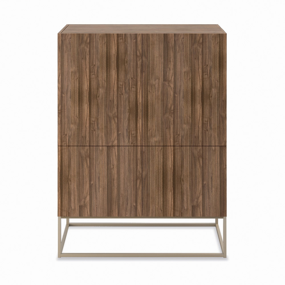 dennenhout , aan de binnen- en buitenkant gefineerd in Canaletto walnoot, geverfd in de Canaletto walnootafwerking. Verstevigd en afgewerkt achterpaneel.
