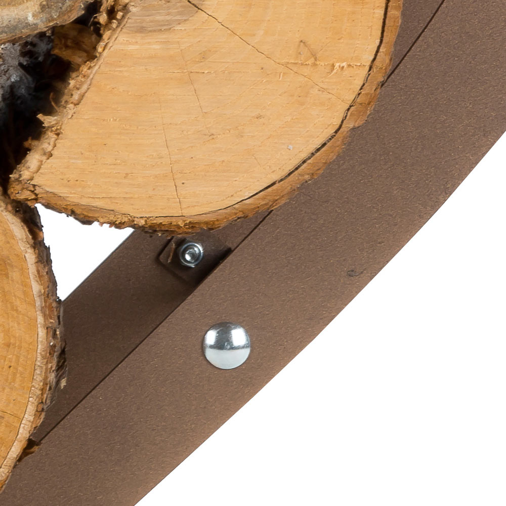 Moderne design houtblokkenhouder in bruin staal in de vorm van een hart, gemaakt in Italië.