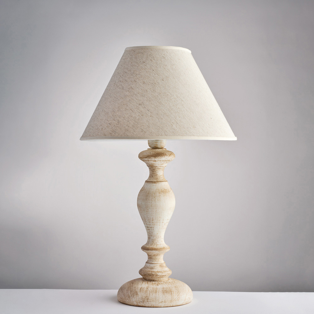 Verfijnd en harmonieus, deze handgemaakte houten lampen, Made in Italy, belichamen de charme van de shabby chic stijl, herinterpreteerd met elegante en natuurlijke smaak. De gedraaide voet , met zachte en evenwichtige lijnen, is gecombineerd met een stoffen lampenkap die een warm en omhullend licht verspreidt, ideaal voor het creëren van een intieme en uitnodigende sfeer.