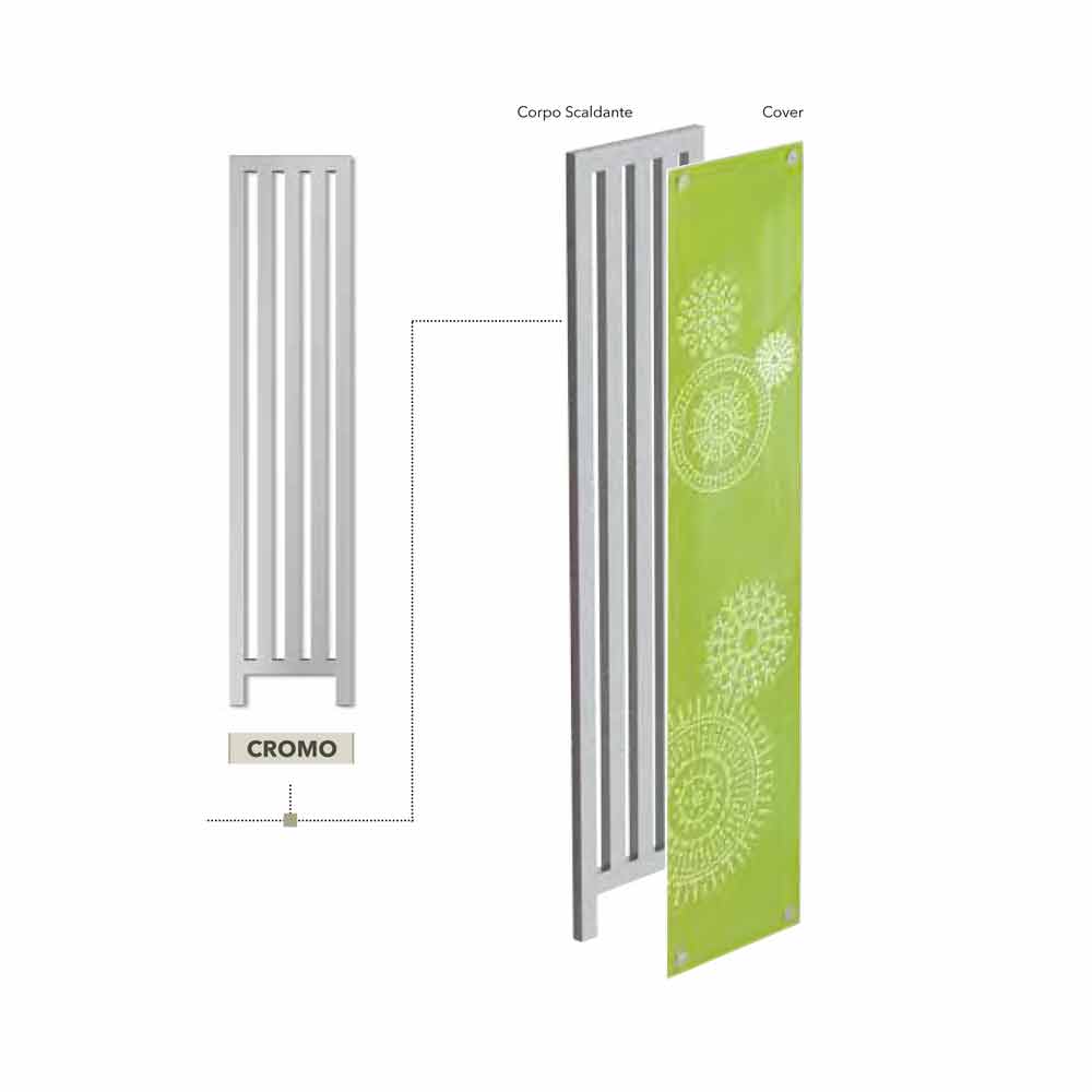 Radiator met verchroomd stalen verwarmingslichaam en gerand en gelakt plaatstaaldeksel, verticaal, in hydraulische uitvoering. Mix van materialen tussen verwarmingsstructuur en afdekplaten in een perfecte balans tussen esthetiek, functionaliteit, zorg en verfijning van detail. Met News Dress kleed je de omgeving aan waarin je leeft. Kies de kleur die het beste bij je past!
