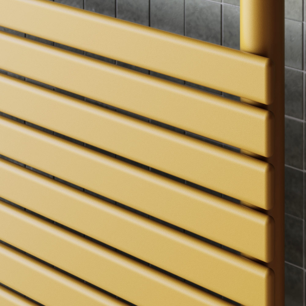 Ontdek het minimalistische design en de geavanceerde functionaliteit van deze okergele handdoekwarmer, ontworpen om harmonieus te passen in een moderne en elegante badkameromgeving. De slanke structuur en strakke lijnen bieden een eigentijdse look die perfect past bij verfijnde interieurs en natuurlijke materialen.