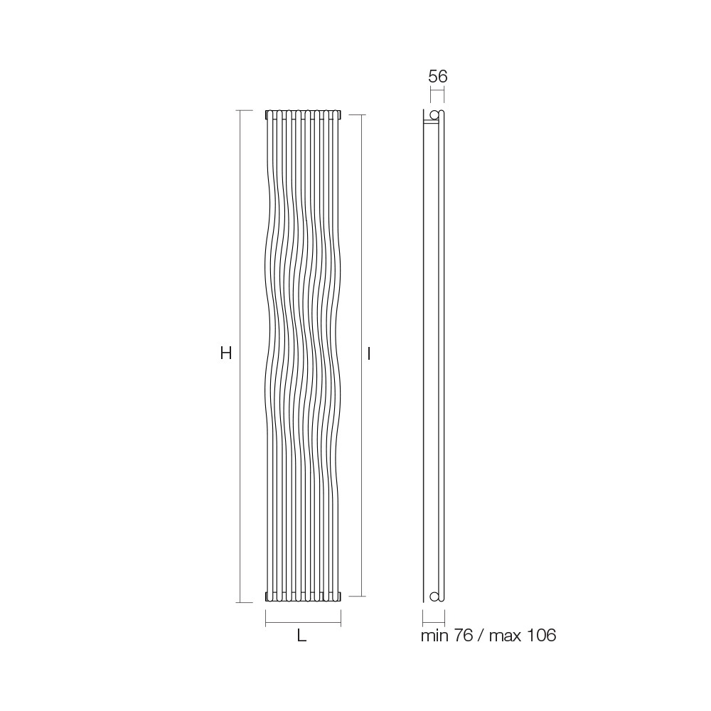 een reeks gebogen verticale elementen met een diameter van 2,2 cm, gelast op