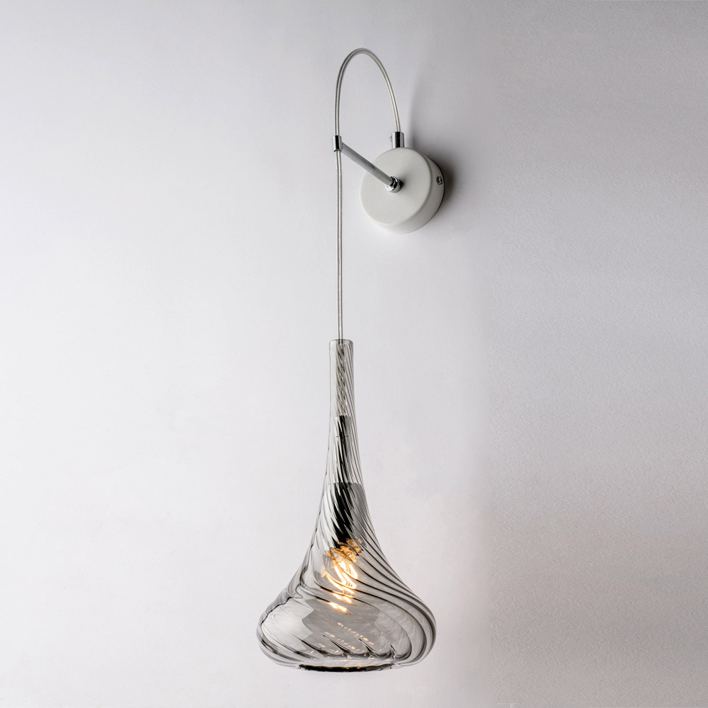 Deze wandlamp is verkrijgbaar in transparant , amberkleurig of grijs en stelt u in staat de sfeer van uw ruimte aan te passen: helder en luchtig in de transparante versie, warm en omhullend in amberkleurig, elegant en modern in grijs. Hij is ideaal voor hallen , entrees , slaapkamers , woonkamers en designprojecten .