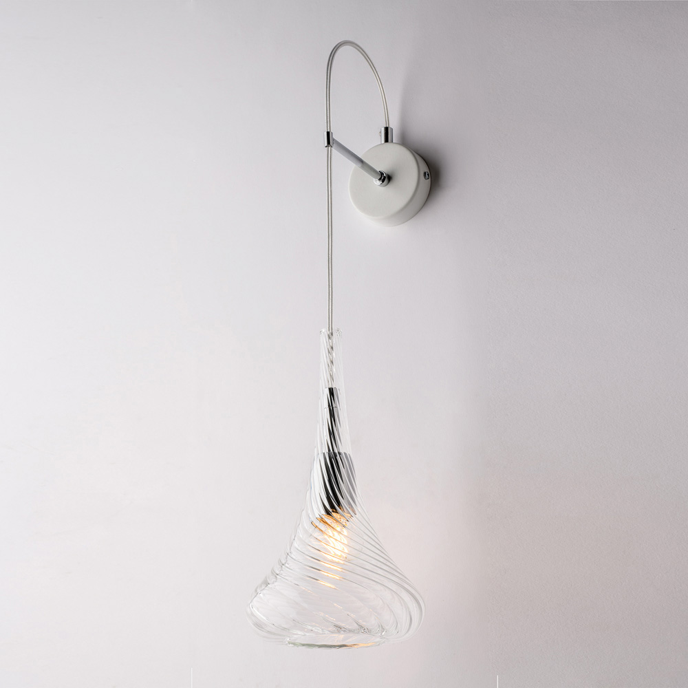 Elegant en lichtgewicht, deze handgemaakte ijzeren wandlamp met Pyrex-glas is een eigentijdse verlichtingsoplossing, ontworpen om uw muren op subtiele wijze te verfraaien. De sierlijke en verfijnde Pyrex-glazen diffuser zorgt voor een geraffineerd visueel effect en verspreidt een zacht, uitnodigend licht.