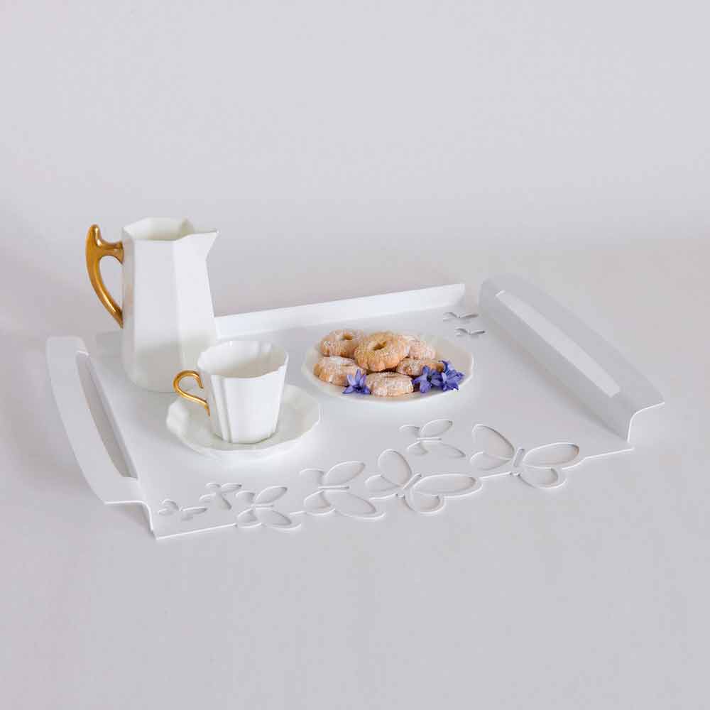 Modern rechthoekig dienblad in wit, beige of ivoorijzer, handgemaakt in Italië.