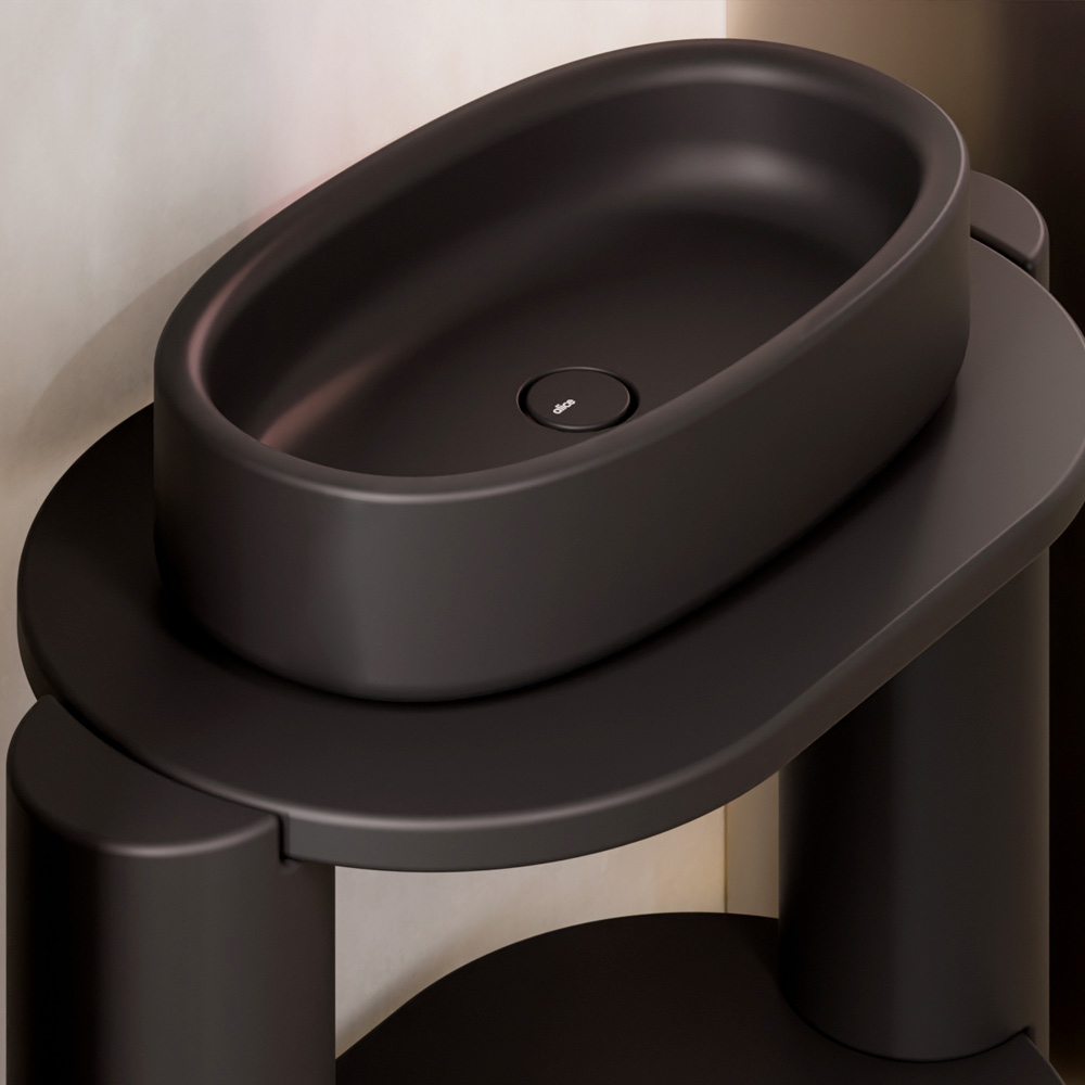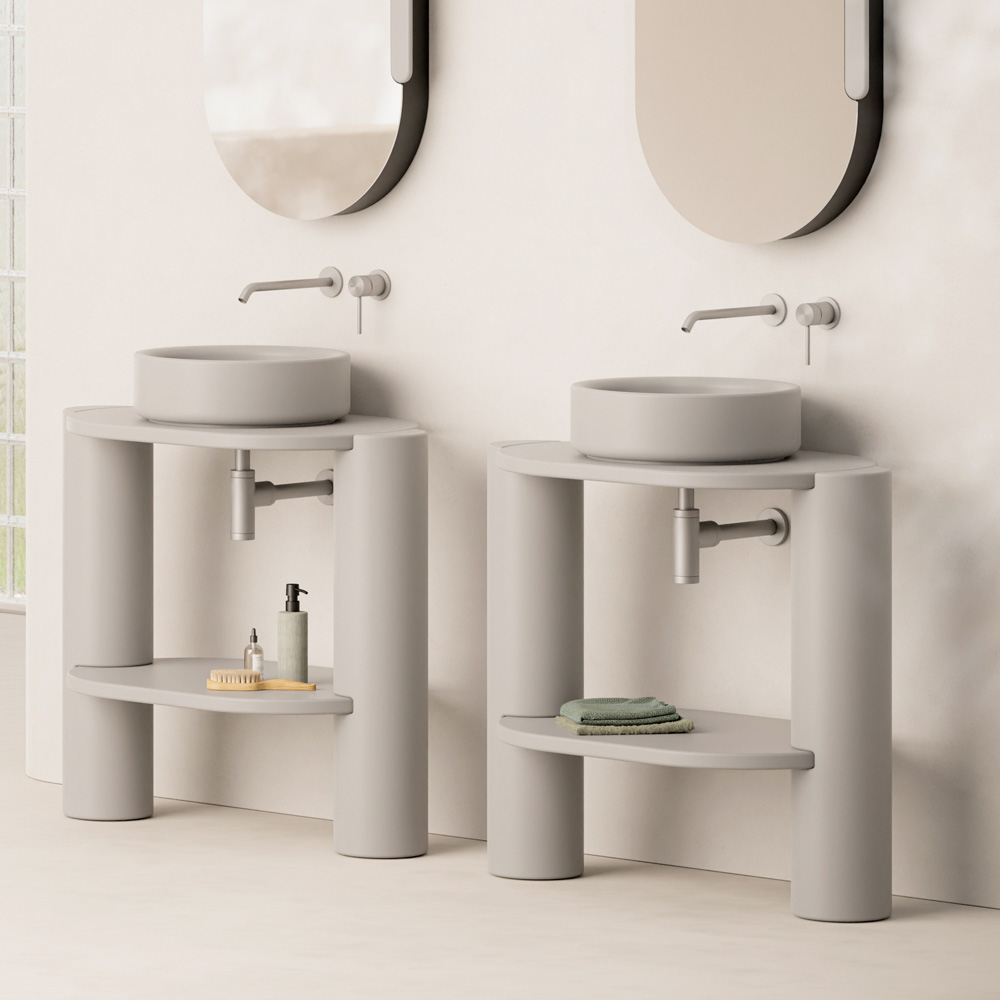 Een meubelaccessoire dat moderne lijnen en zachte geometrieën combineert, ontworpen voor diegenen die op zoek zijn naar een elegante, praktische en buitengewone badkamer.