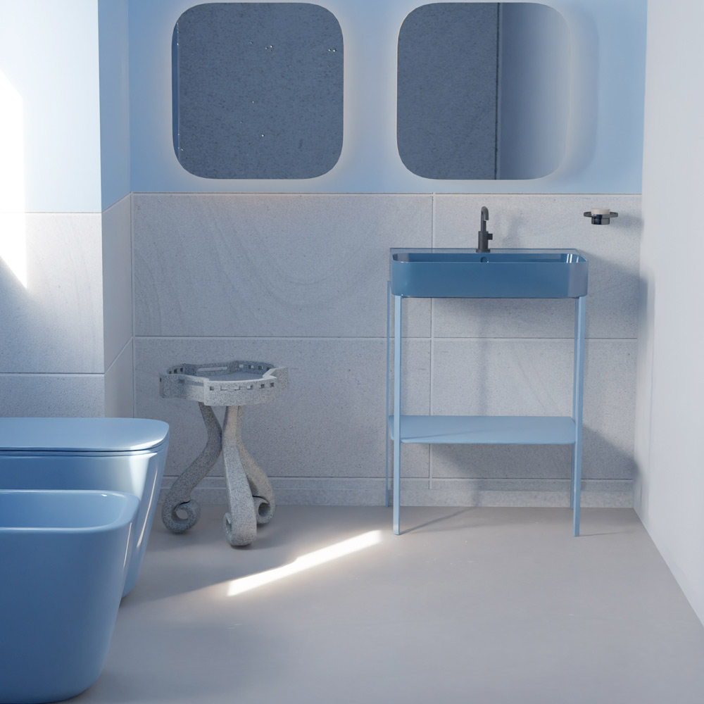 De structuur, met een onderste plank , ondersteunt niet alleen de gootsteen op elegante wijze, maar biedt ook een nuttige opbergruimte, waardoor de ruimte wordt geoptimaliseerd zonder dat dit ten koste gaat van de stijl.