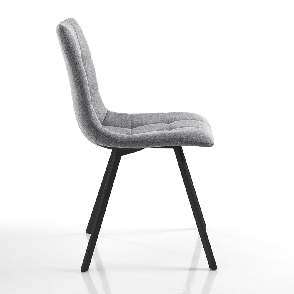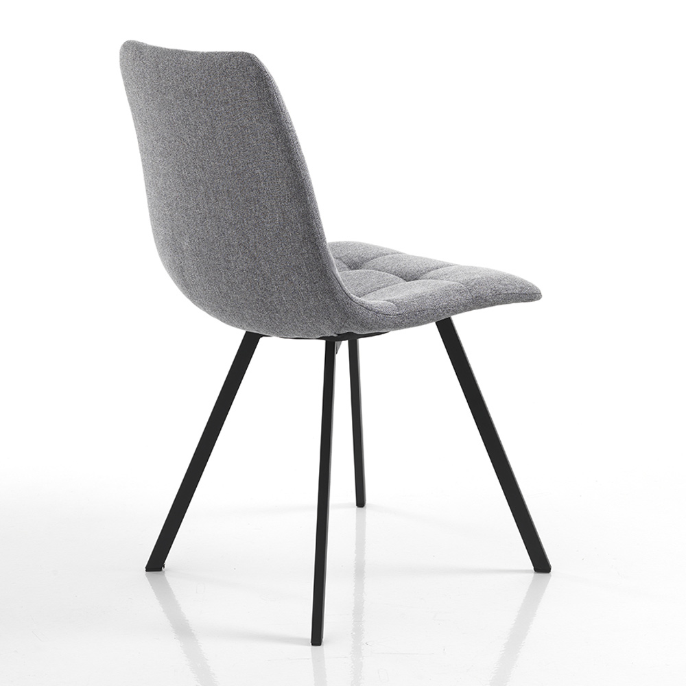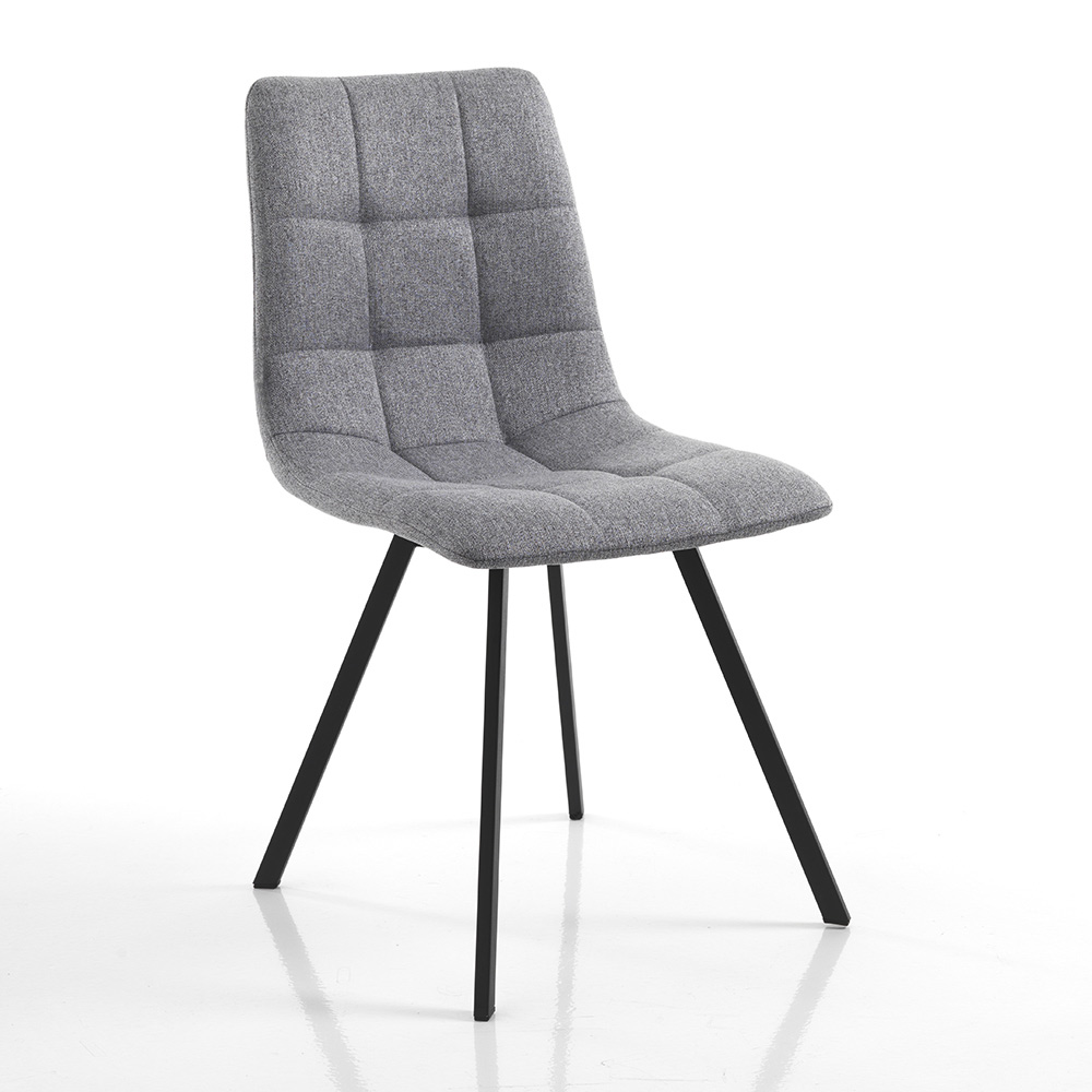 Keukenstoel met structuur van mat zwart gelakt staal en zitting geheel bekleed met grijze stof . Ideaal om te plaatsen in de eetkamer en keuken, maar ook in projectruimtes zoals bars en restaurants dankzij het elegante en verfijnde ontwerp en de veelzijdigheid in gebruik. De vormen die het figuur markeren, samen met de zachte vulling, bieden een bijzonder gastvrije en comfortabele stoel om heerlijke momenten van ontspanning te garanderen.