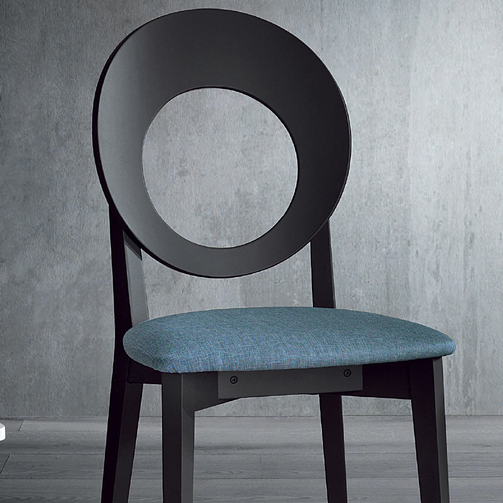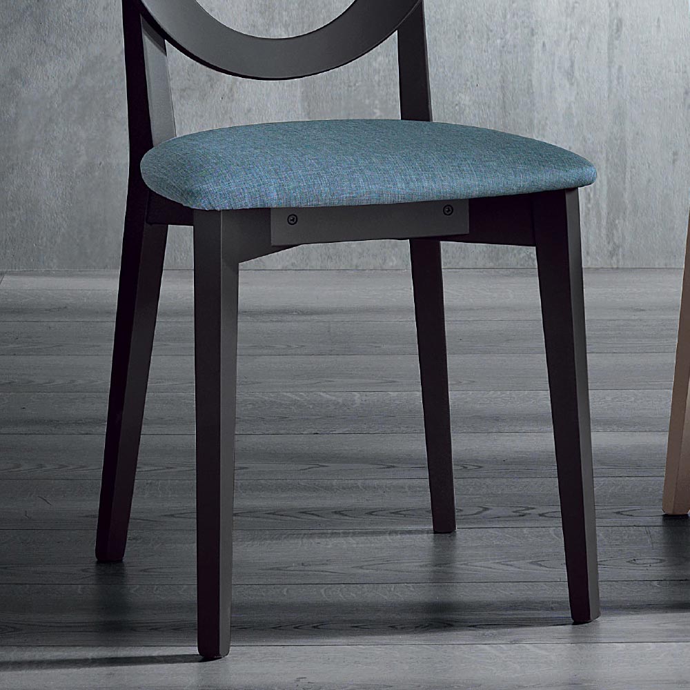 Moderne keukenstoel in hout met verschillende afwerkingen en stof, gemaakt in Italië.