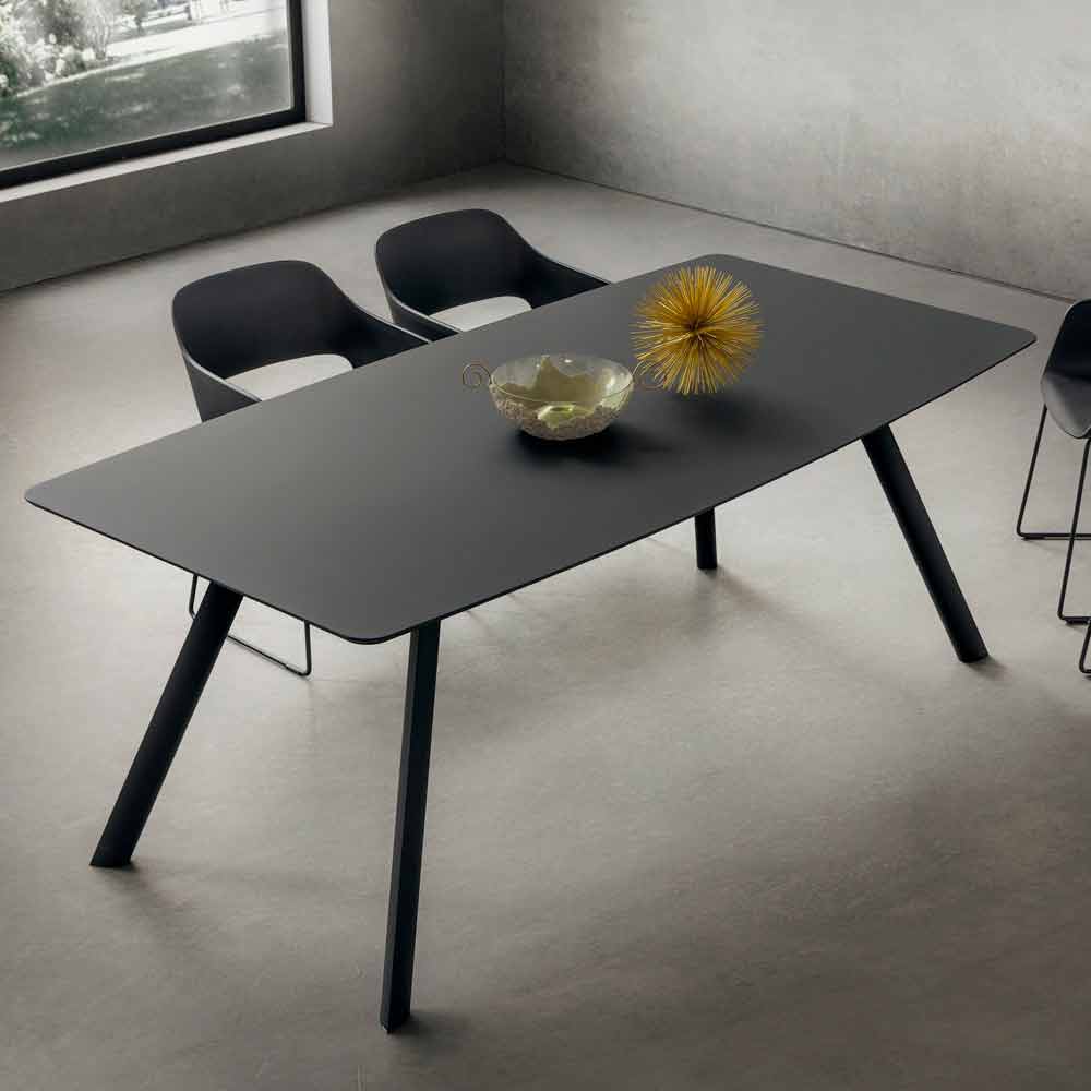 Eettafel in gelaagde fenix en geborsteld aluminium Made in Italy.
