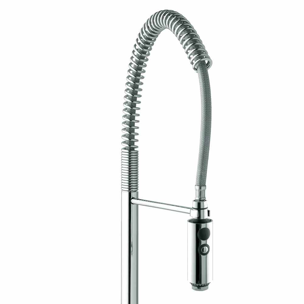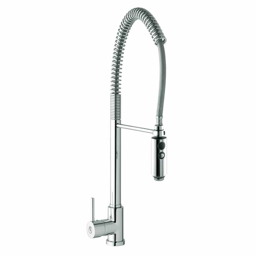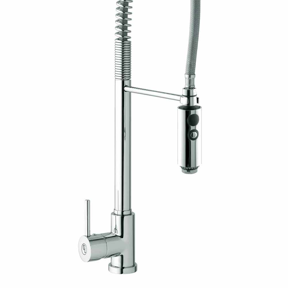 Made in Italy gootsteen mixer van verchroomd messing. Functionaliteit en design komen samen in dit prachtige artikel met een moderne smaak ontworpen voor eenvoudig en praktisch gebruik dankzij de aanwezigheid van de verstelbare uitloop met veer en de 2-jet douche. Wat het uniek maakt, is de aanwezigheid van een door een patroon gedefinieerde ES die koud water kan leveren wanneer de hendel in de middelste stand staat, waardoor er geen warm water uit de ketel nodig is en dus aanzienlijke energiebesparingen mogelijk zijn.