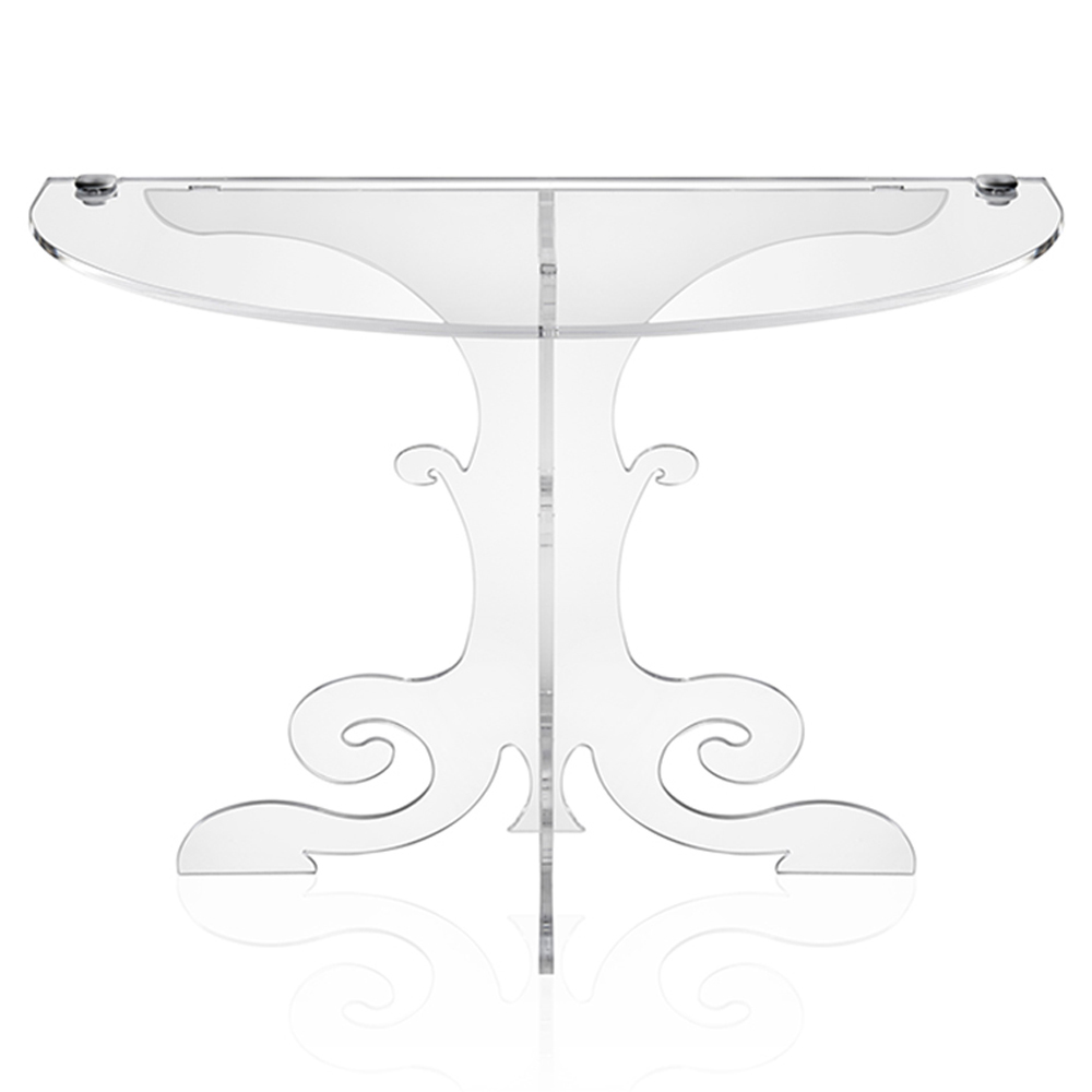 Het TIANA- nachtkastje is geïnspireerd op de Lodewijk XVI-wandconsoles uit de late 18e eeuw, opnieuw geïnterpreteerd met de meest technologische transparante materialen: 100% PMMA-acrylkristal uit nieuw polymeer. De bochtigheid en elegantie van de vormen worden versterkt door de schittering en helderheid van het materiaal, die in de loop van de tijd constant en onveranderd blijven. Het gebruikte virgin polymeer PMMA plexiglas is niet giftig, hypoallergeen, geurloos en antibacterieel. 100% recyclebaar. Bedacht, ontworpen en gemaakt in Italië, met Italiaanse materialen.