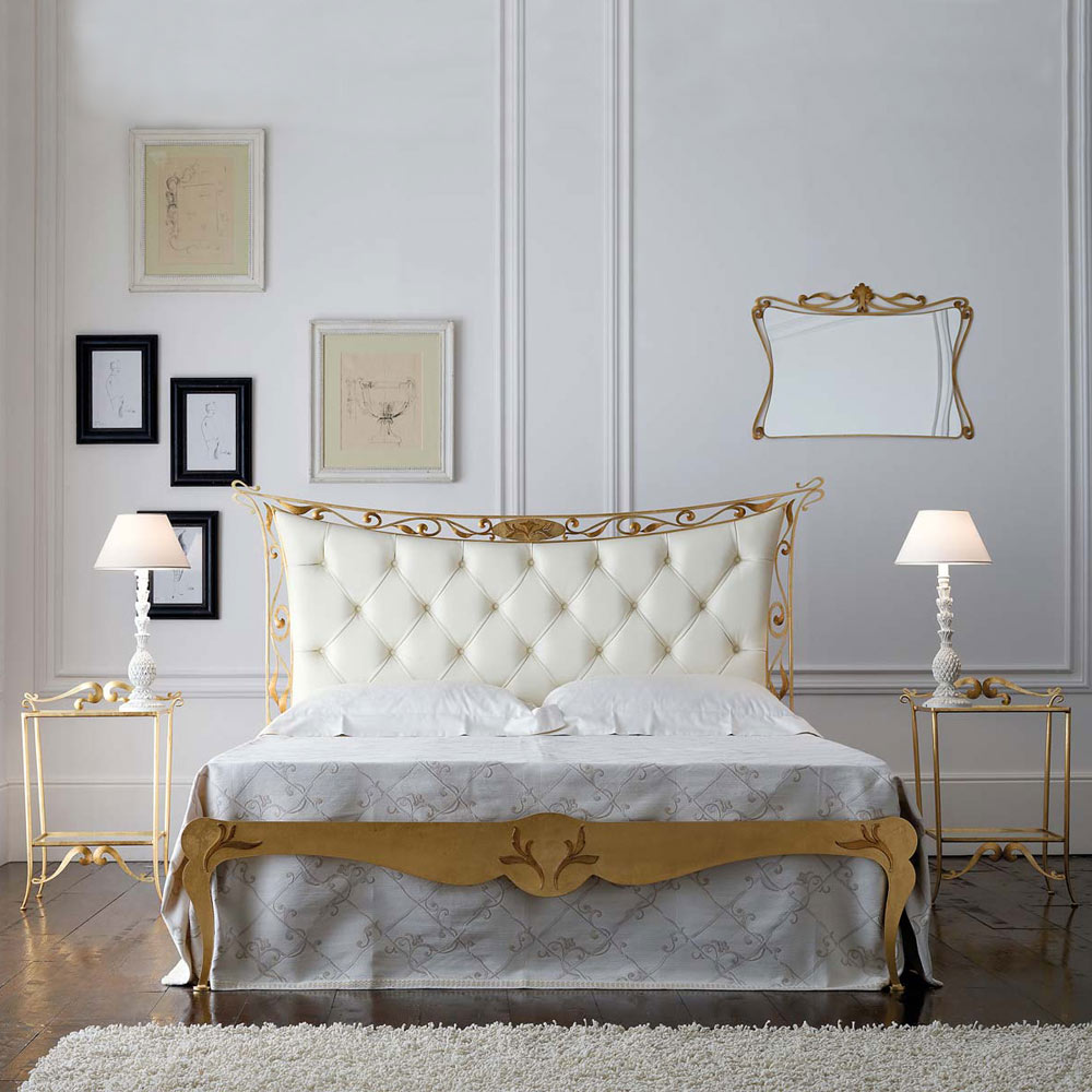 vulling van echt leer in sneeuwwitte afwerking. Dit product met een klassieke en tijdloze stijl heeft een grote visuele en scenografische impact. Dankzij deze kenmerken weet het een unieke en suggestieve sfeer in de slaapkamer te creëren. Het comfort en gemak van deze structuur worden gegarandeerd door de uitstekende kwaliteit van de materialen die voor de constructie zijn gebruikt.
