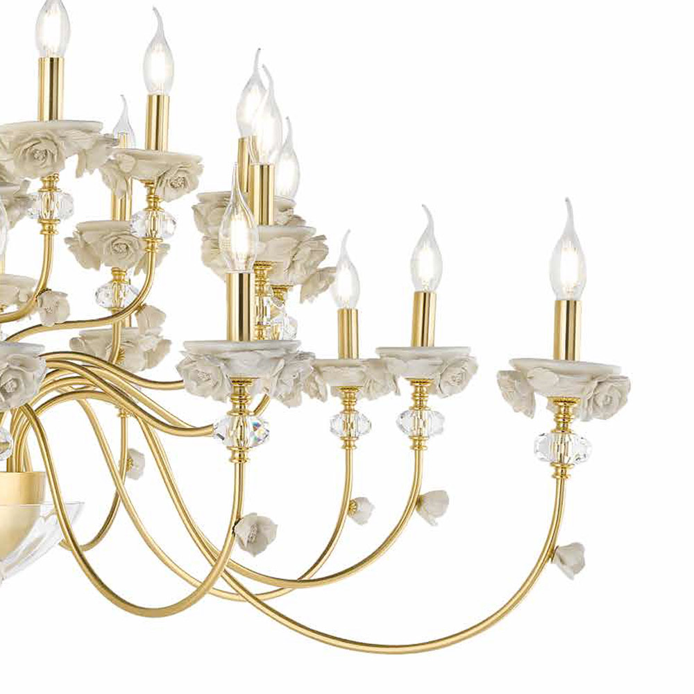 30 lichts kroonluchter in porselein en geblazen glas, luxe gemaakt in Italië.