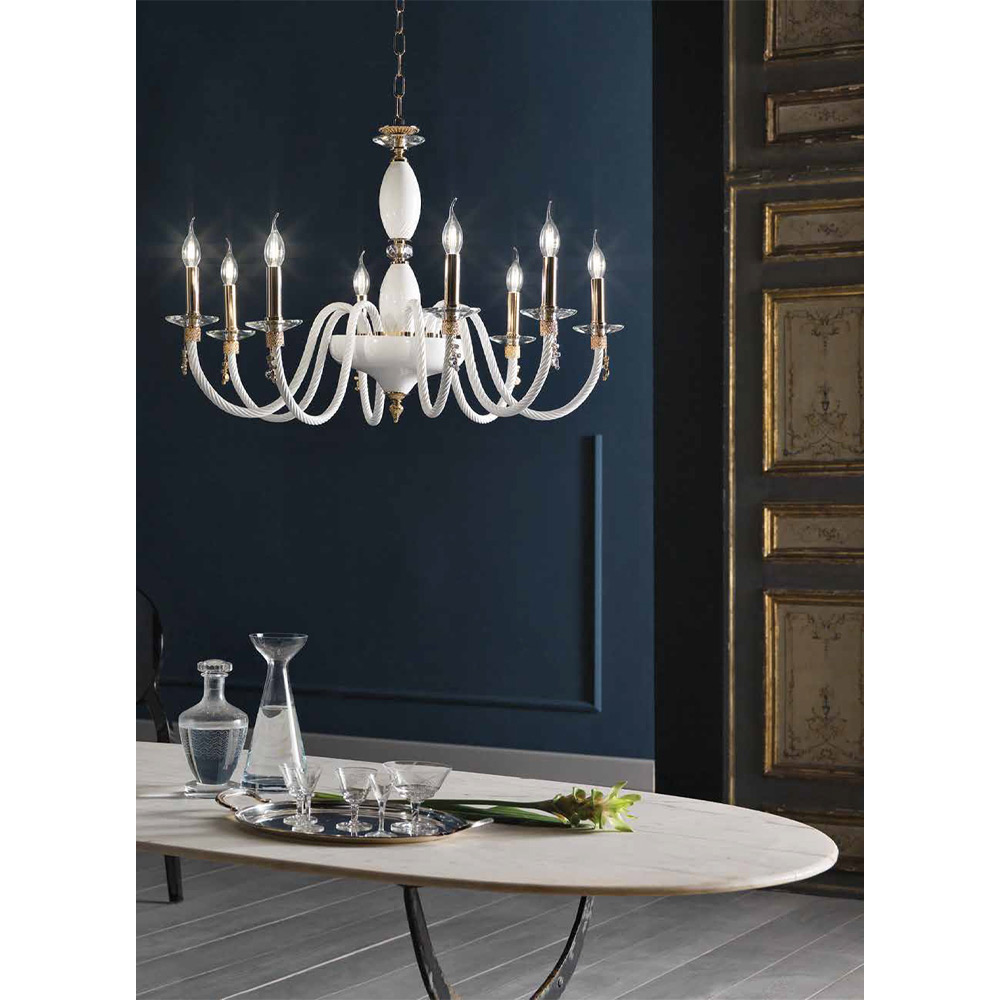 8-lichts kroonluchter in geblazen glas en juweeldetails, Italiaanse luxe.