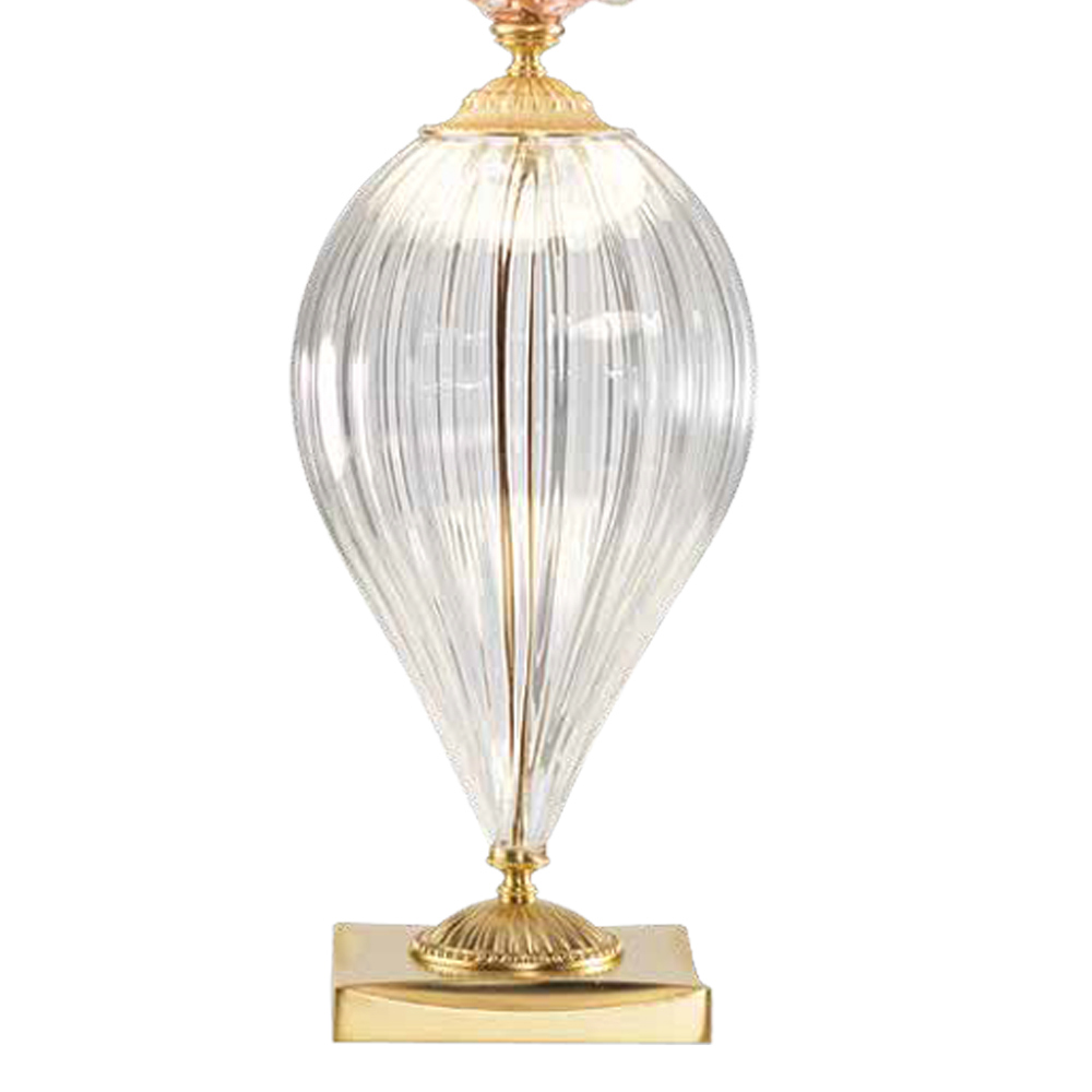 - Lichaam in transparant glas - details in rosè glas - satijn goud metaal en rosè lampenkap;