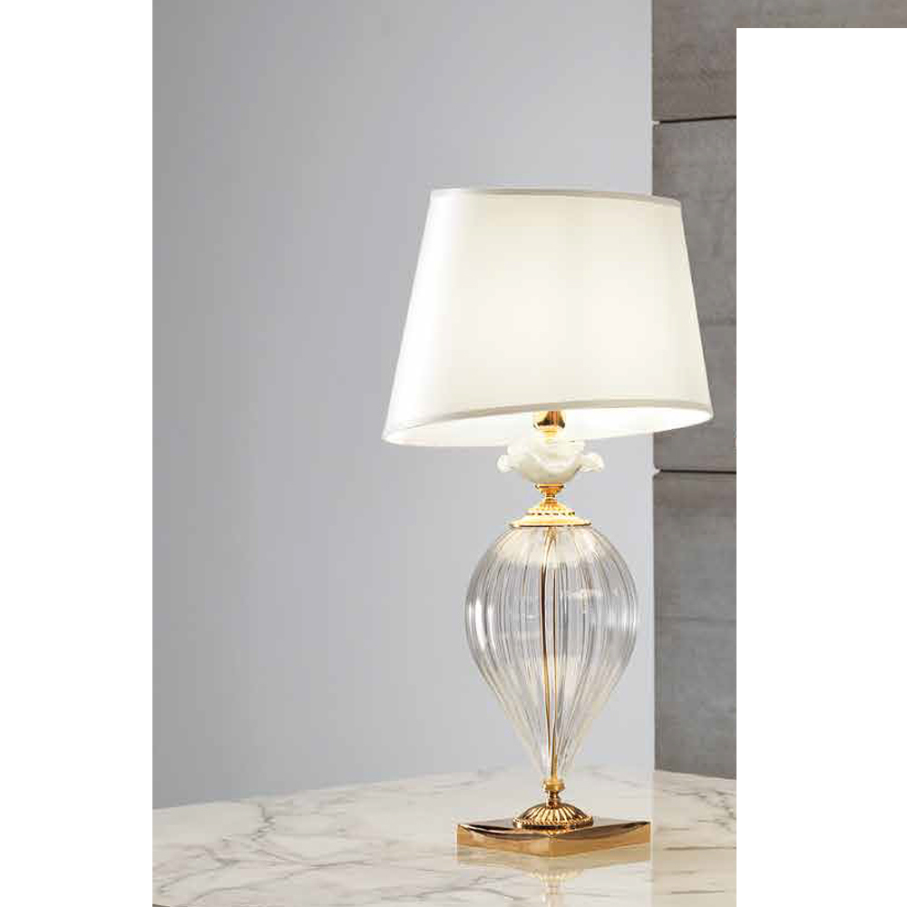 Tafellamp in handgemaakt glas met kristallen decoratie, luxe gemaakt in Italië.