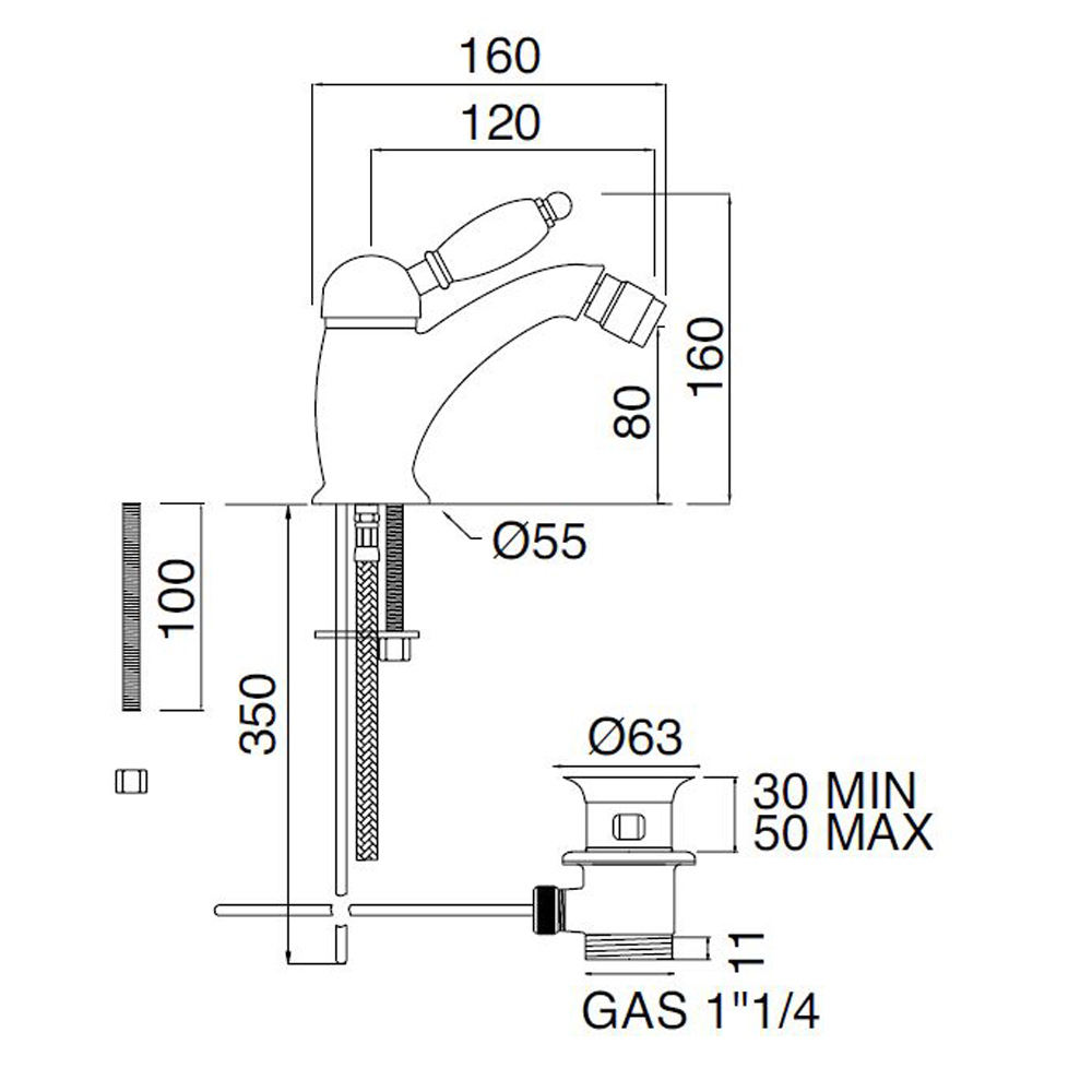 Bidet mengkraan met klassieke hendel in handgemaakt messing made in Italy.