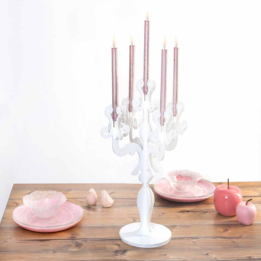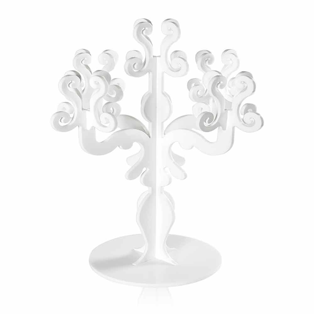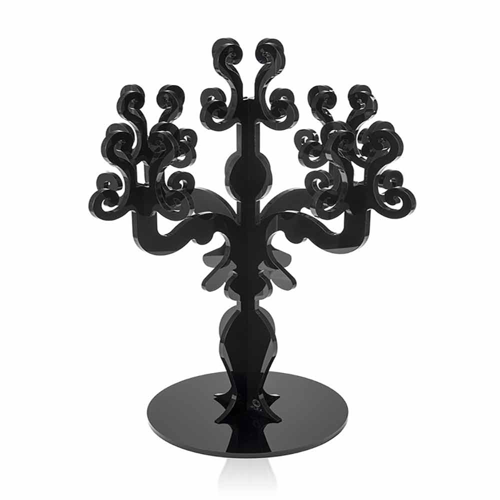 Middelgrote kandelaar met 5 armen in plexiglas: Arbus De Arbus-kandelaar is elegant en met een renaissance-smaak aangepast aan onze tijd: 5 armen in transparante PMMA van plexiglas, met lasergesneden vormen die herinneren aan de kostbare ornamenten van de renaissance kandelaars in bergkristal. De fysisch-technische kenmerken van het plexiglas (schokbestendig, niet-configureerbaar, onveranderbaar, thermisch isolerend) maken de kandelaar geschikt voor zowel binnen- als buitenruimtes. De helderheid en helderheid worden onveranderd en ongewijzigd in de loop van de tijd gehandhaafd. Het gebruikte PMMA-plexiglas van nieuw polymeer is niet-toxisch, hypoallergeen, geurloos en antibacterieel. 100% recyclebaar. Dacht, ontworpen en gemaakt in Italië met Italiaanse materialen. De afmetingen zijn: L 36 x P 36 x H 50 cm. Verkrijgbaar in de volgende kleuren: zwart, wit, transparant rokerig grijs en transparant.