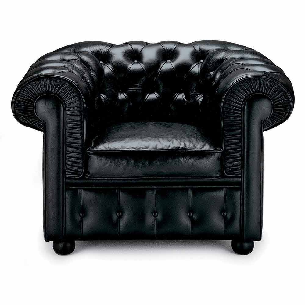 Klassieke lederen fauteuil met houten poten gemaakt in Italië.