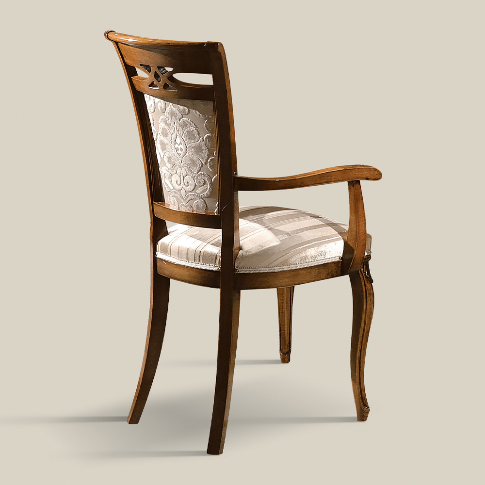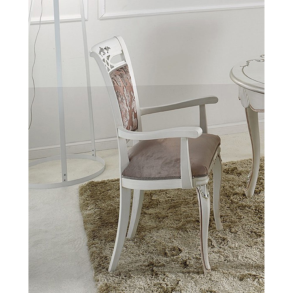 wit en zilver houtafwerking. Deze stoel heeft een gewatteerde zitting en rugleuning bedekt met stof en past zich aan elke behoefte aan door optimaal comfort te bieden, en het is ook mogelijk om te kiezen tussen de versie met of zonder armleuningen. Een unieke en verfijnde aanvulling, volledig