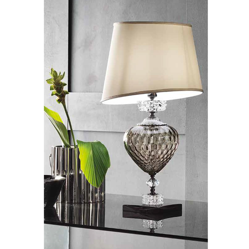 Tafellamp in handgemaakt glas en metaal met lampenkap, Italiaanse luxe.