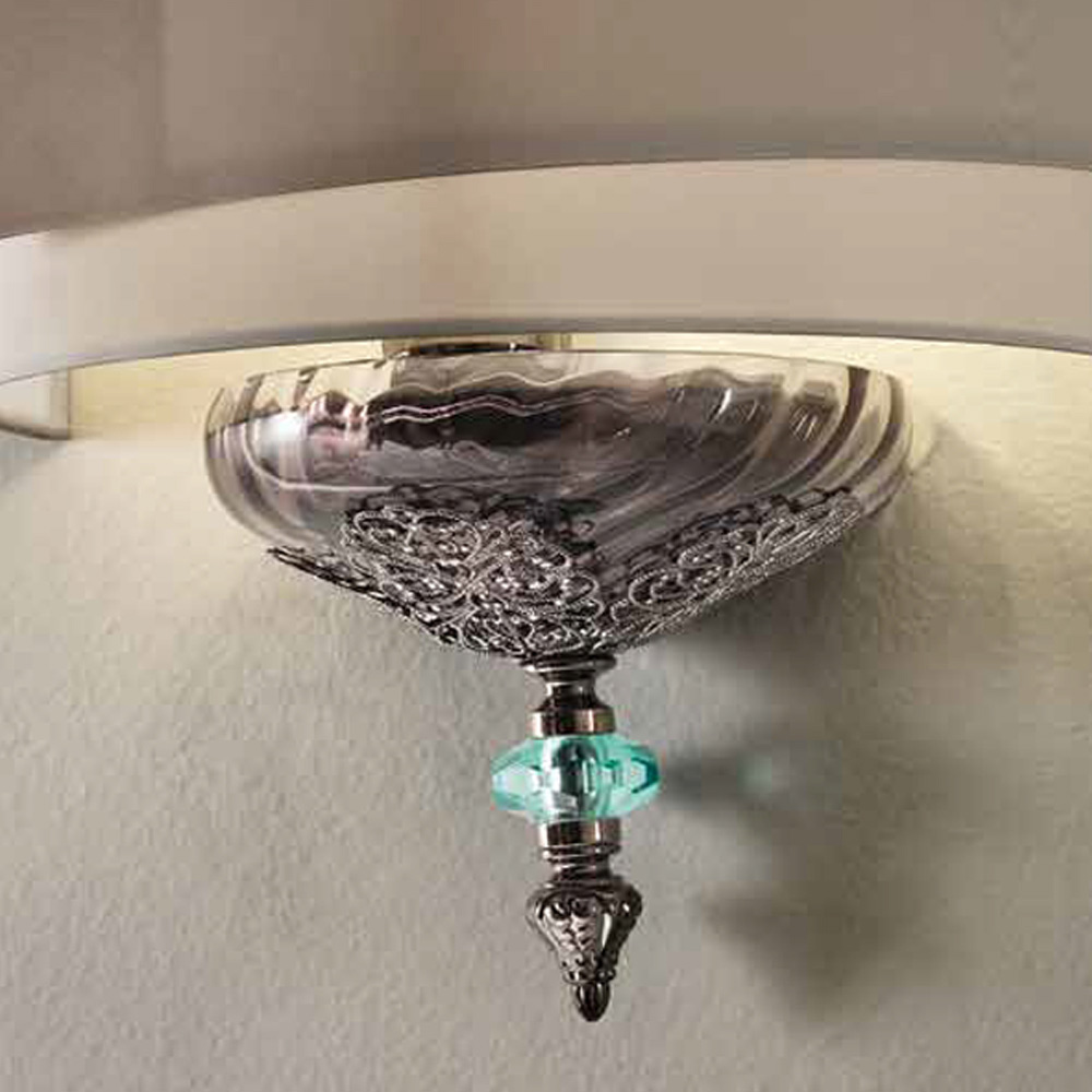 Luxe handgemaakte glazen wandlamp met lampenkap, made in Italy.
