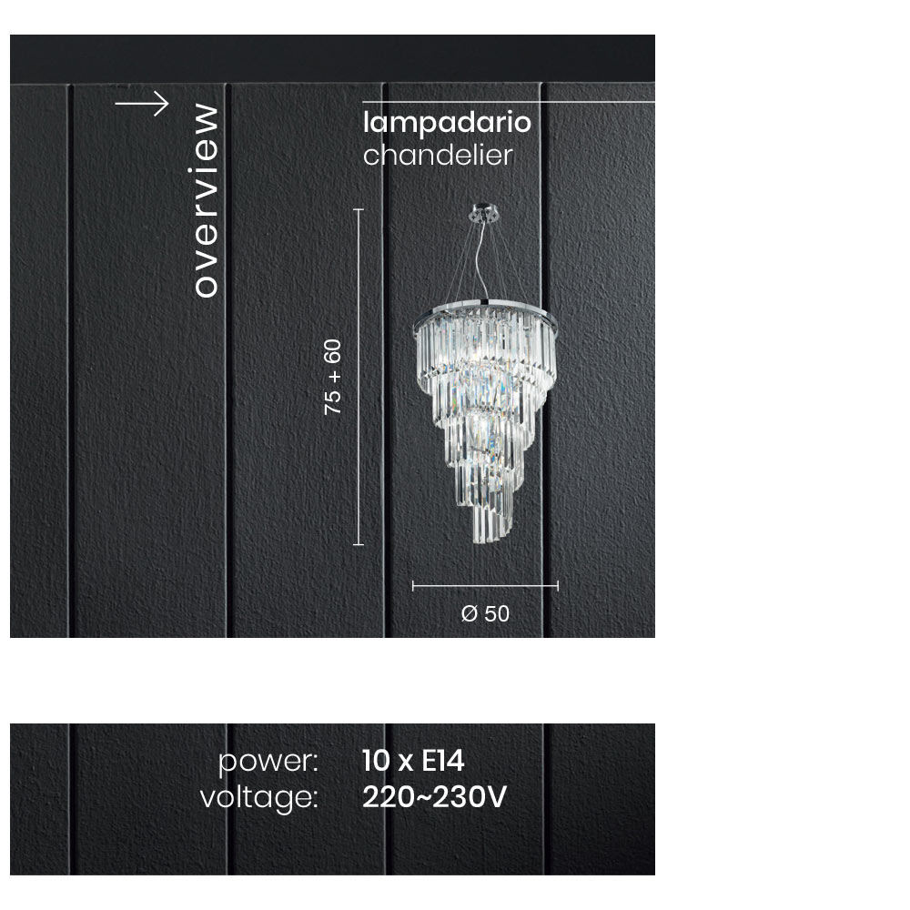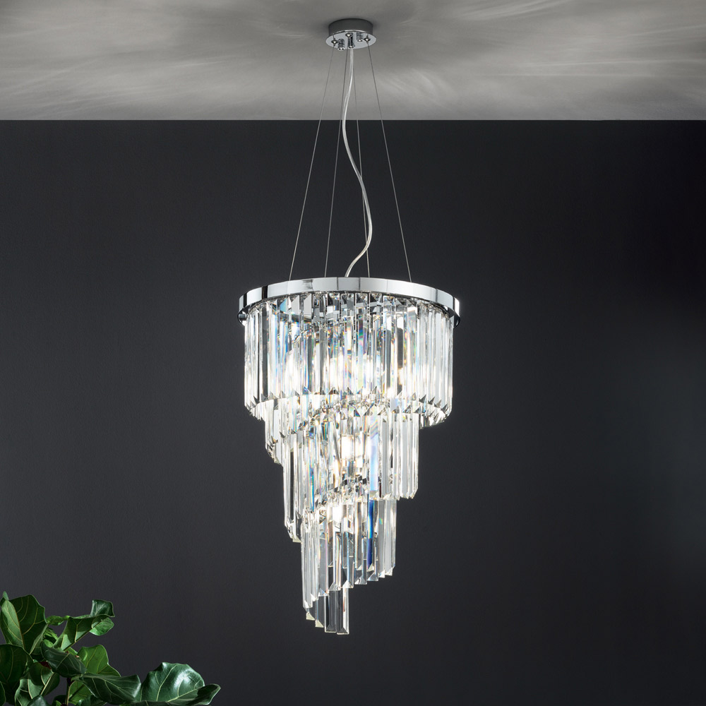 Het echte sterke punt bestaat uit de decoratieve elementen in geslepen kristal die elke kamer decoreren en verlichten met smaak en karakter, in een mix van stijl, klasse en innovatie.