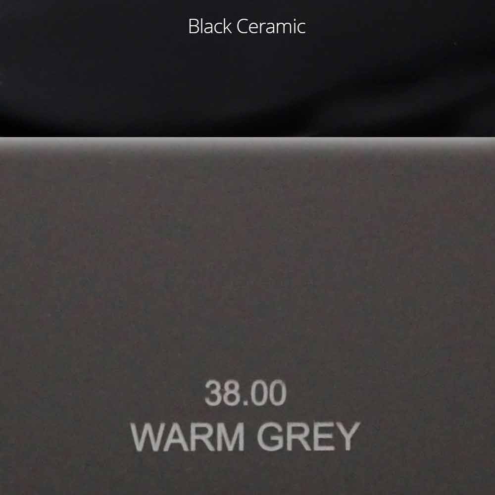 - Warm Grey: matte warme donkergrijze afwerking met zwarte keramische inzetstukken op de handgrepen;