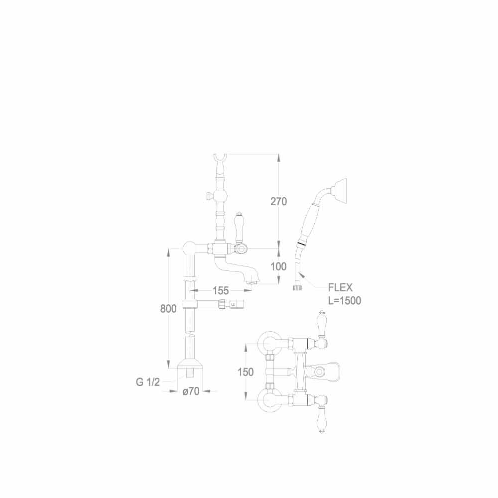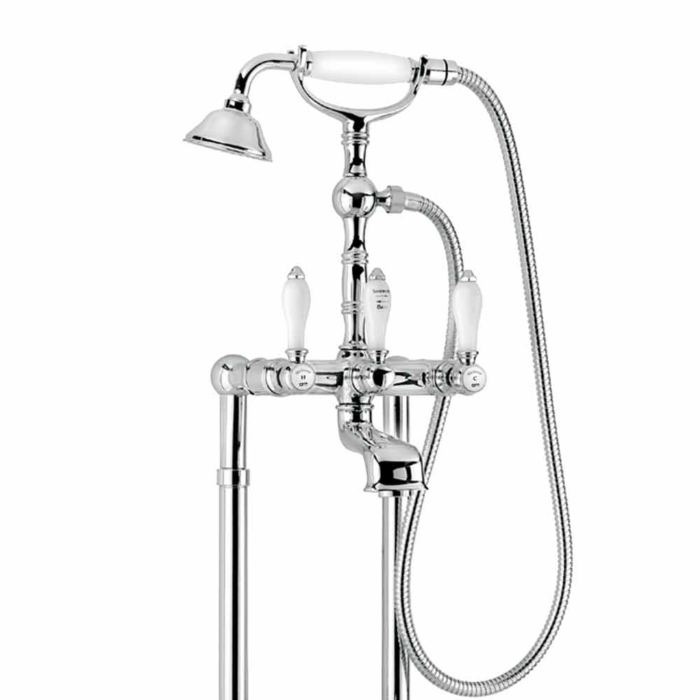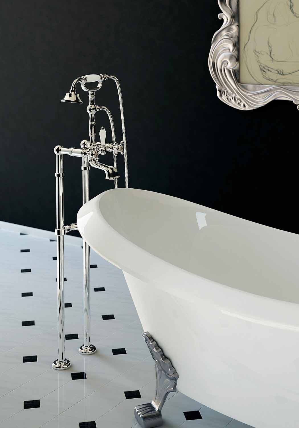 Externe badmengkraan op aanrechtkolommen met omstelling en duplex handdouche Made in Italy.