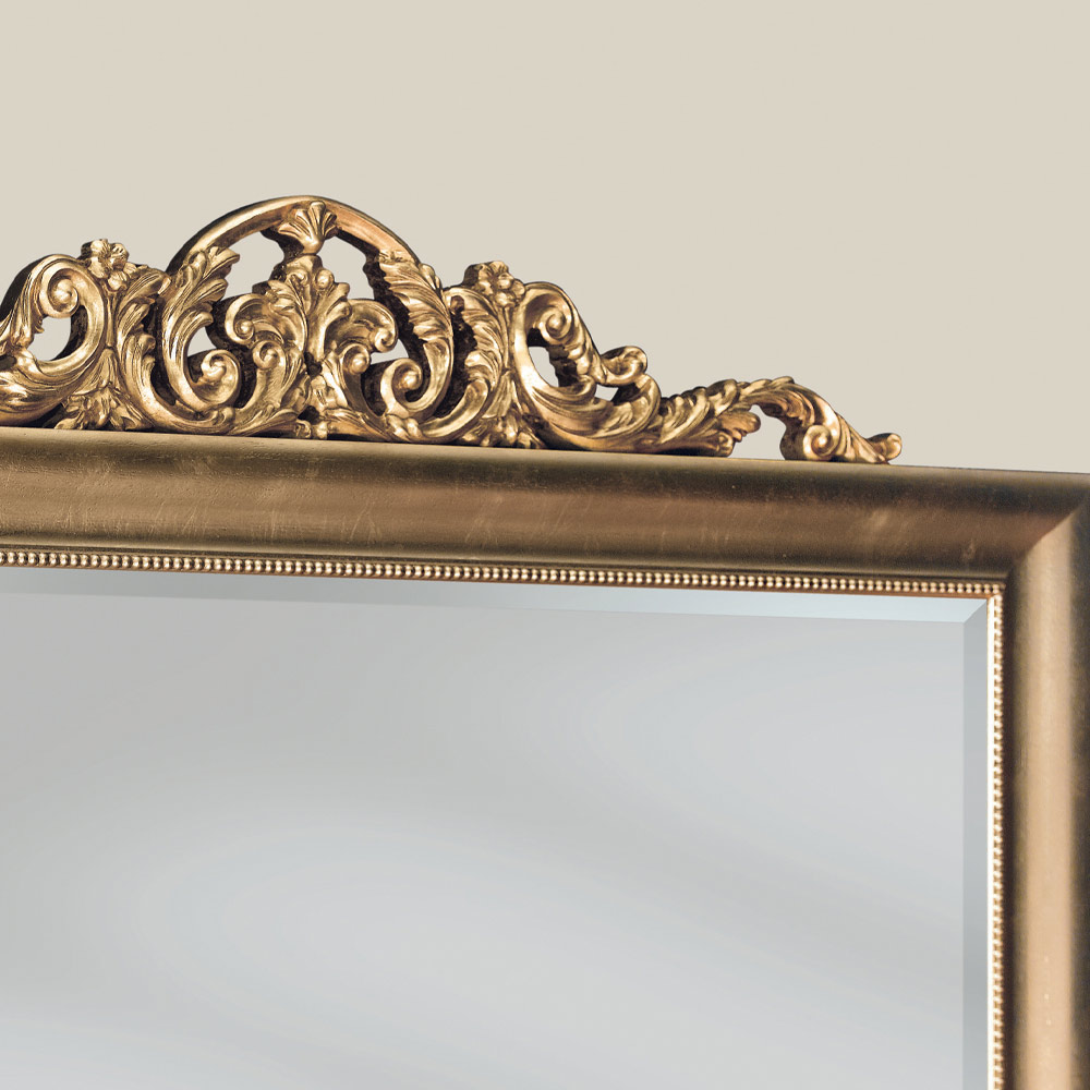Elegante rechthoekige spiegel met houten frame versierd met bladgoud met naturalistische decoratie. Dankzij zijn klassieke stijl is deze spiegel ideaal om elke kamer een elegante en luxueuze toets te geven.