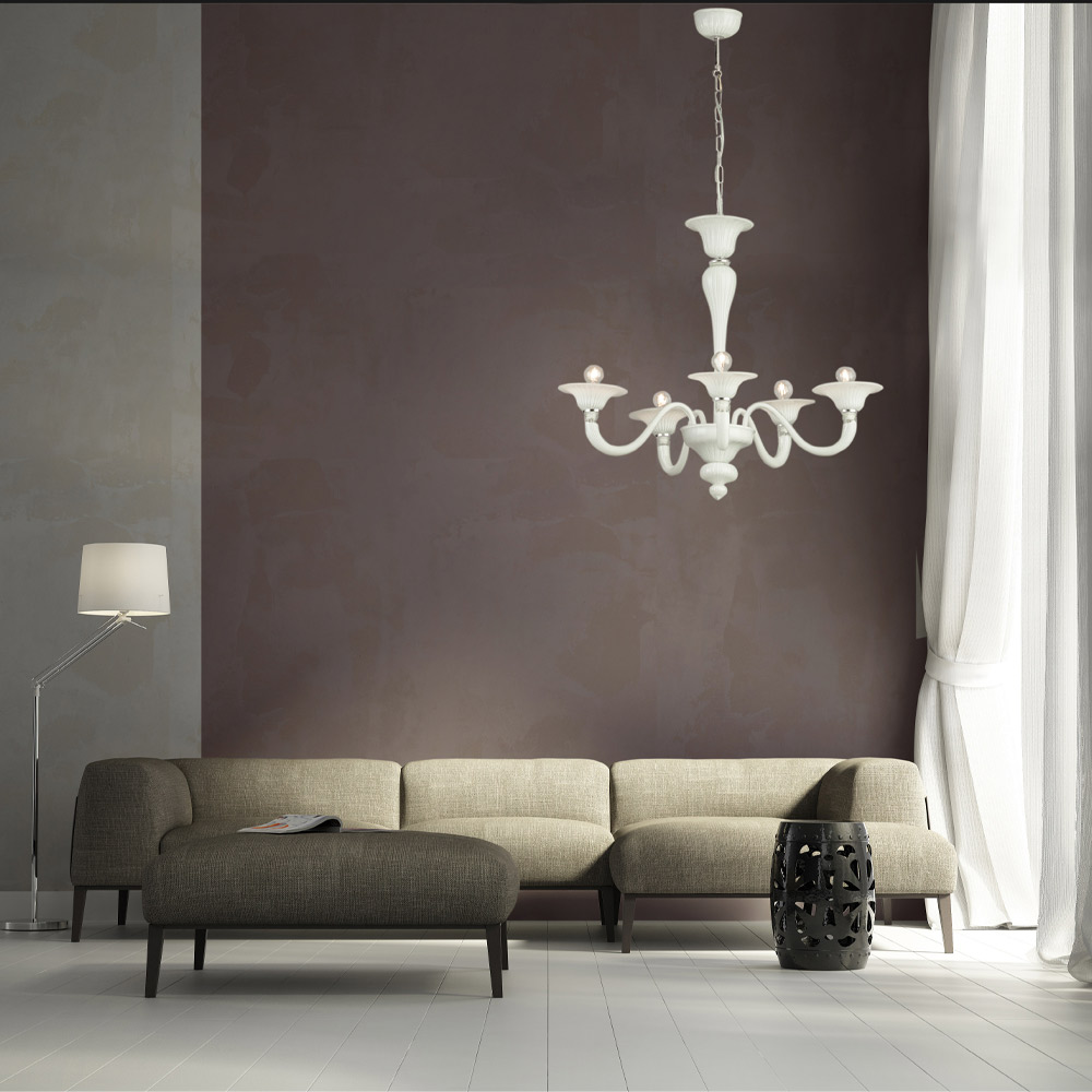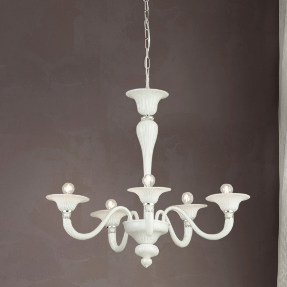 Klassieke handgeblazen witte Venetiaanse glazen kroonluchter.