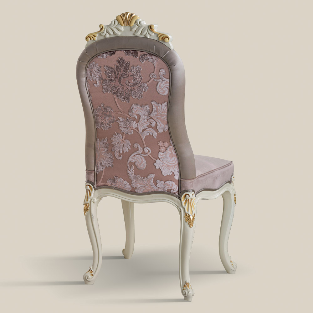 Klassieke stoel in wit hout en gestoffeerde stof Gemaakt in Italië.
