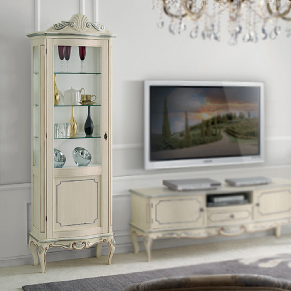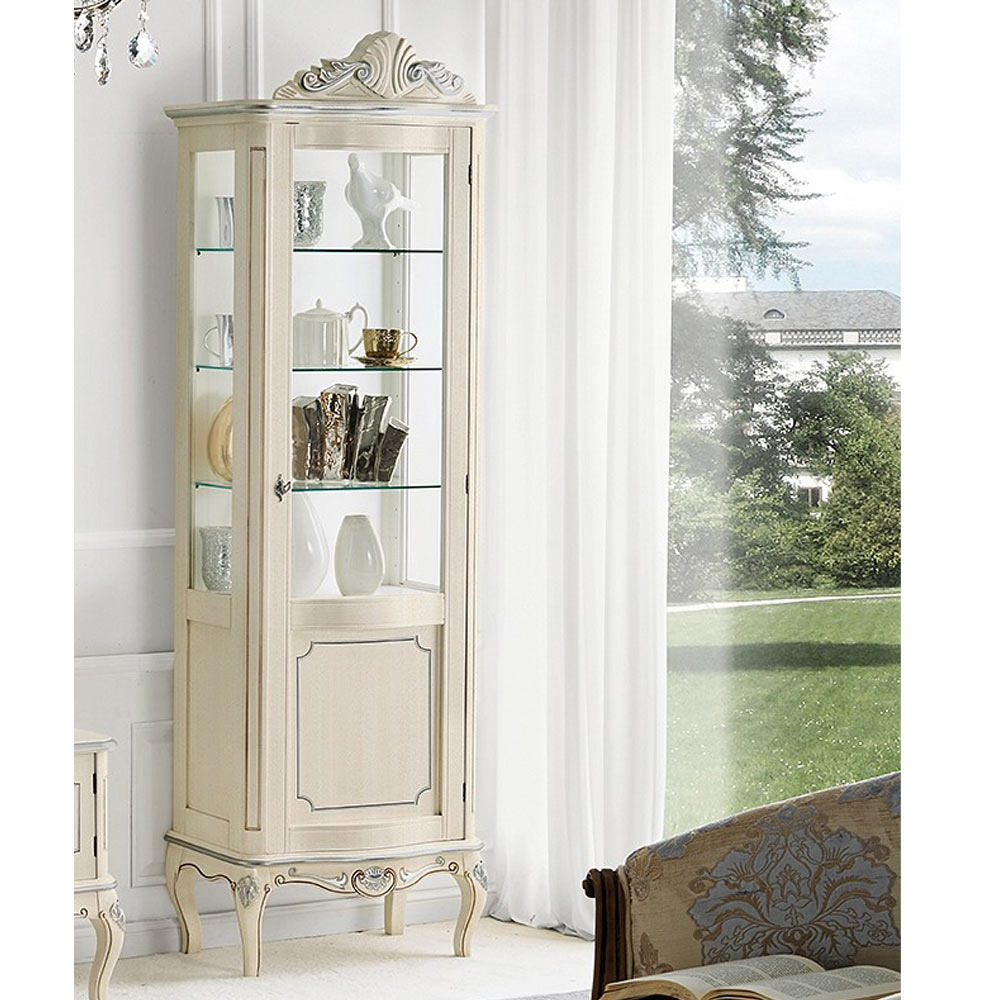 Klassieke vitrinekast in wit walnoot of mokka Made in Italy.