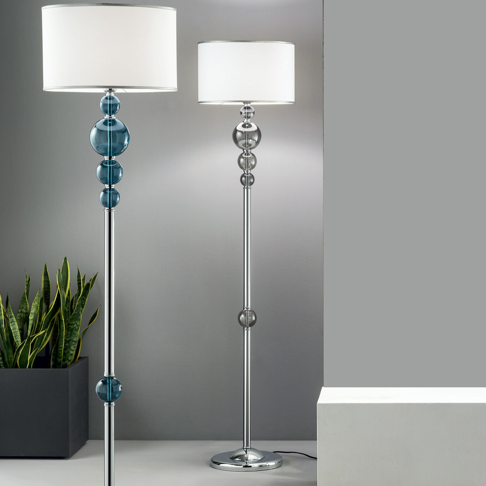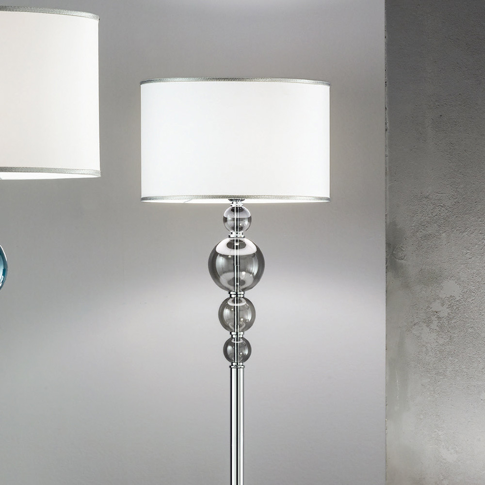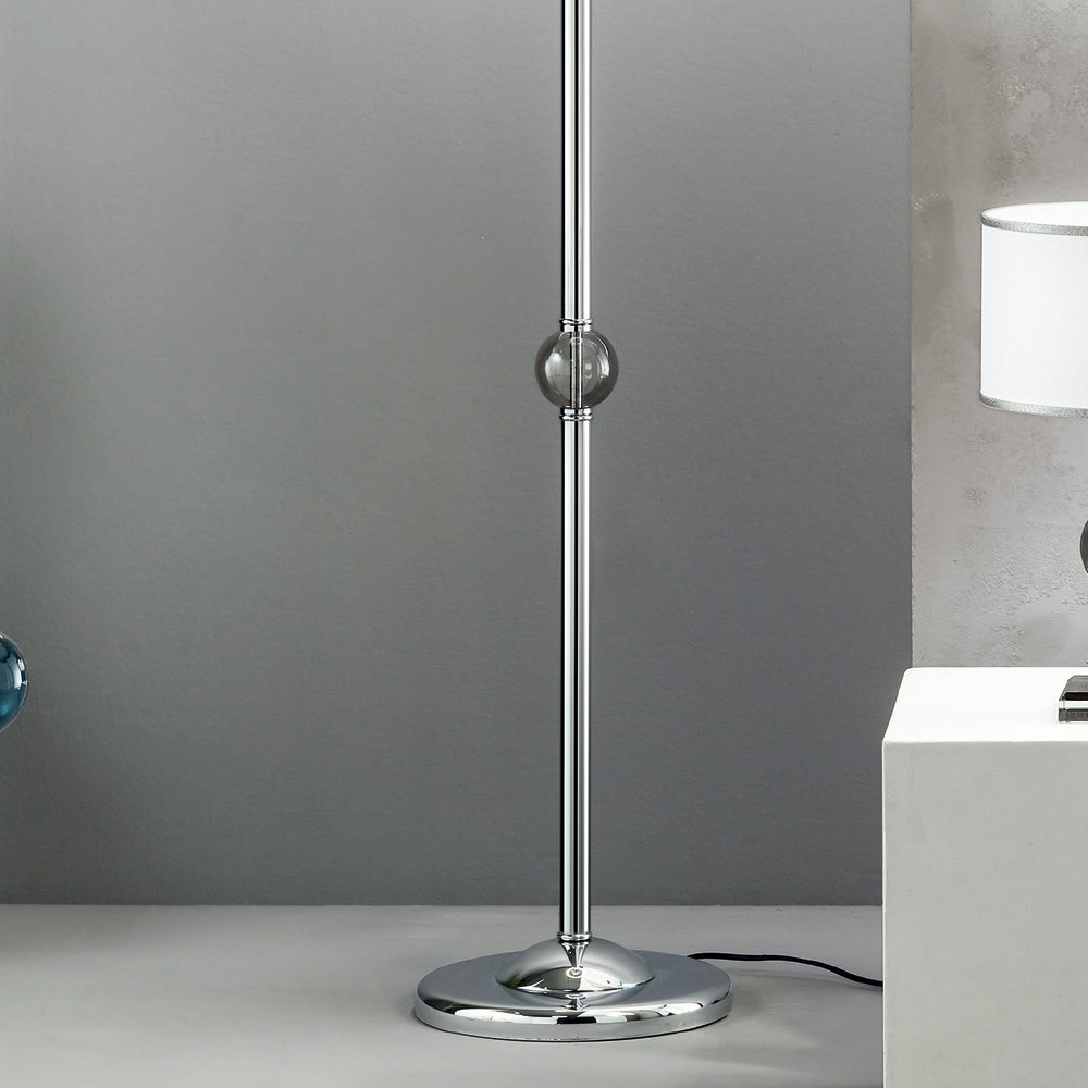 Klassieke en elegante vloerlamp in chroom metaal en handgemaakt glas, made in Italy.