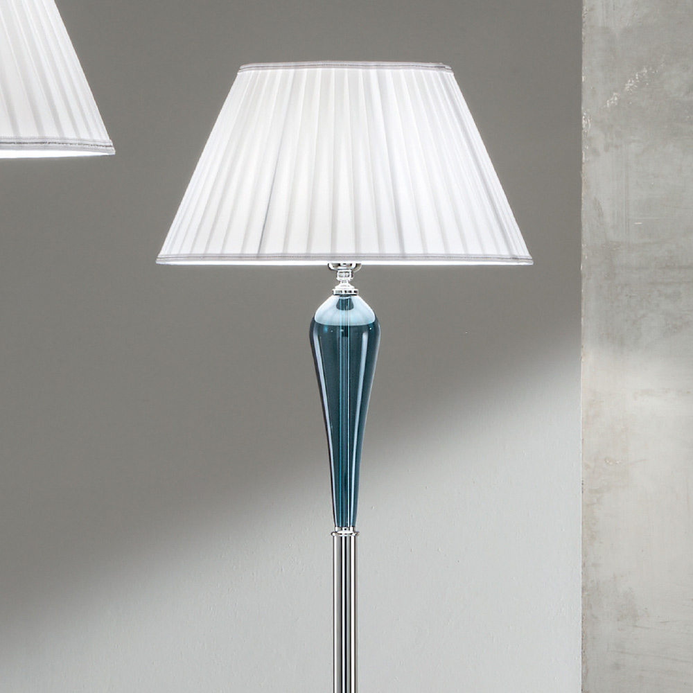 Het ontwerp wordt gecompleteerd door een lampenkap in stof met geplooid effect die zorgt voor zacht en gedempt licht; bijzonder geschikt voor het verlichten van een hoek van de slaapkamer, woonkamer of kantoor; ideaal om verfijning te geven aan woonomgevingen in een mix van stijl, klasse en innovatie.