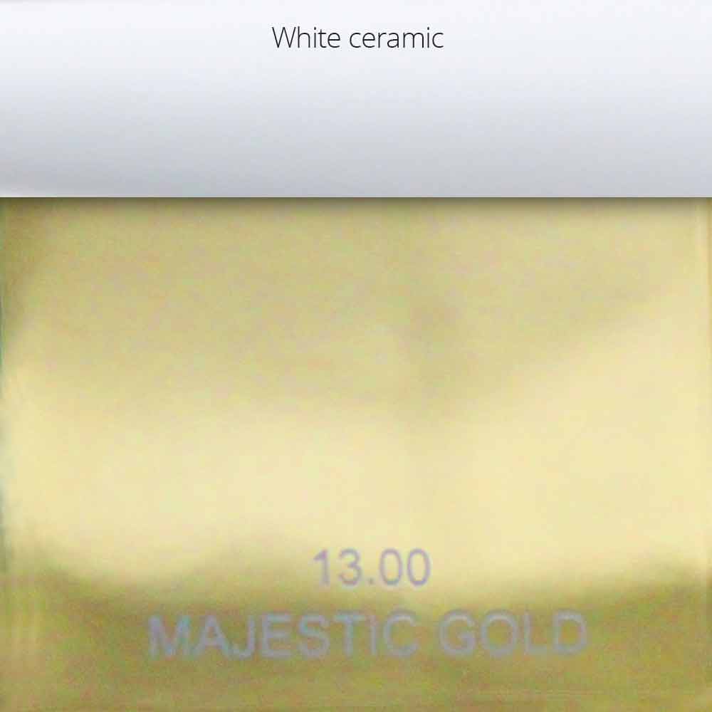 - Majestic Gold: glanzende 13 gouden afwerking met witte keramische inzetstukken op de handgrepen;
