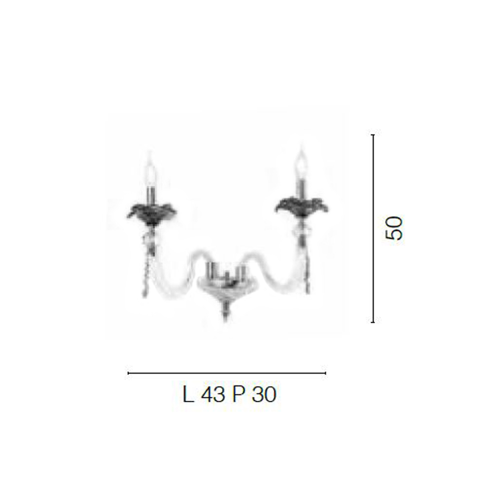 Handgemaakte 2-lichts wandlamp in geblazen glas en florale decoraties, Italiaanse luxe.